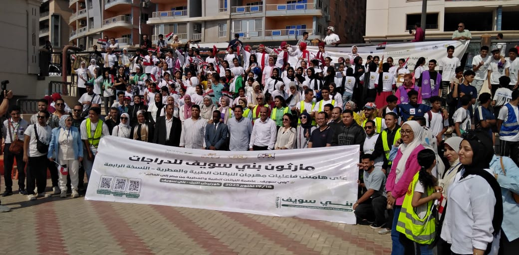 أطلق نائب محافظ بني سويف، الدكتور بلال حبشي، شارة البدء لانطلاق ماراثون الدراجات والمشي بالمحافظة، إيذانًا بانطلاق فعاليات النسخة الرابعة من مهرجان النباتات الطبية والعطرية، الذي يرسّخ مكانة المحافظة كعاصمة عالمية لهذا القطاع الحيوي.