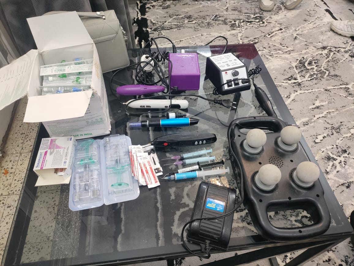 وخلال المداهمة، عُثر على أدوات ومستلزمات تُستخدم في تجميل البشرة والجلد، وأخرى مخصصة لتجميل وتقويم الأسنان، ما يشكل خطرًا جسيمًا على صحة المواطنين، في ظل غياب أي ضوابط طبية أو اشتراطات لمكافحة العدوى.