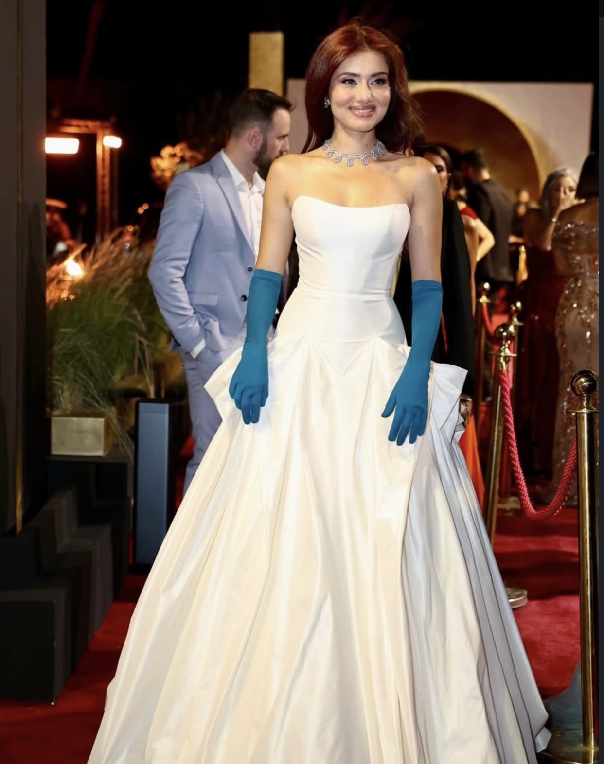 تألقت الفنانة جيهان شماشرجي، خلال افتتاح الدورة الثامنة من مهرجان الجونة السينمائي الدولي، حيث تألقت بإطلالة أني بفستان الأميرات بالون الأبيض وظهرت بشعر منسدل وماكياج خفيف أضفى على إطلالتها لمسة ناعمة وأنيقة.