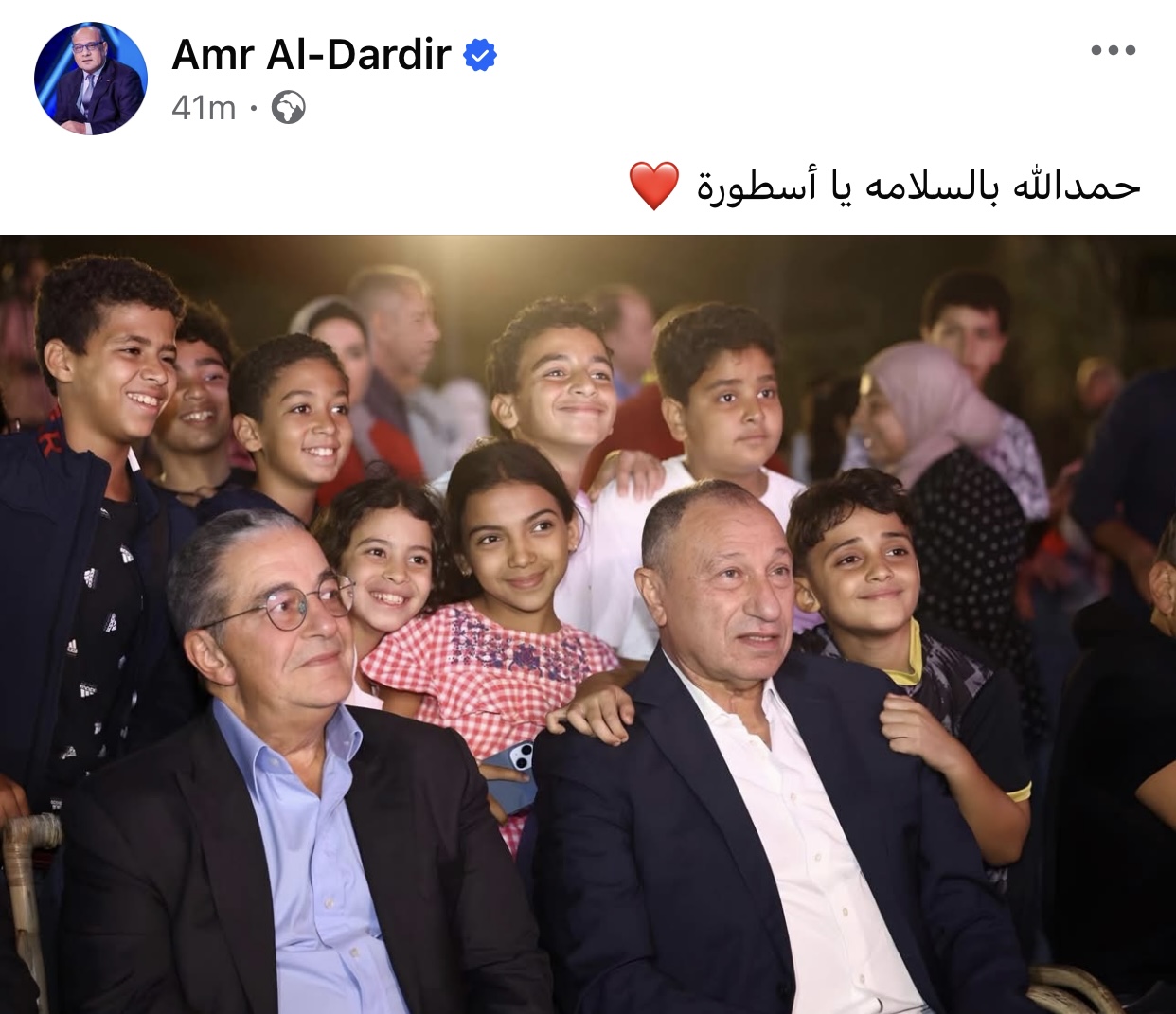 وكتب الدرديري على حسابه الشخصي بموقع فيسبوك: “حمدلله بالسلامة يا أسطورة”.