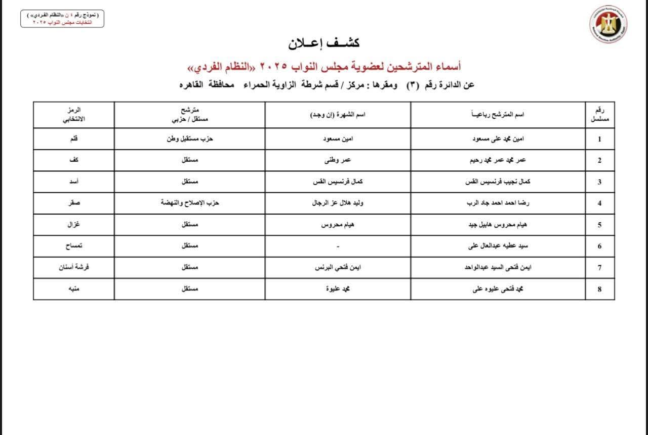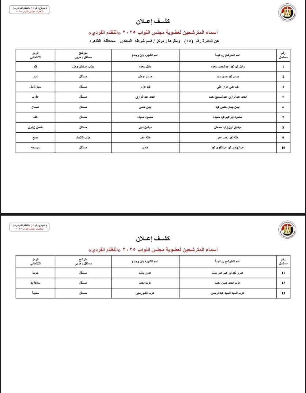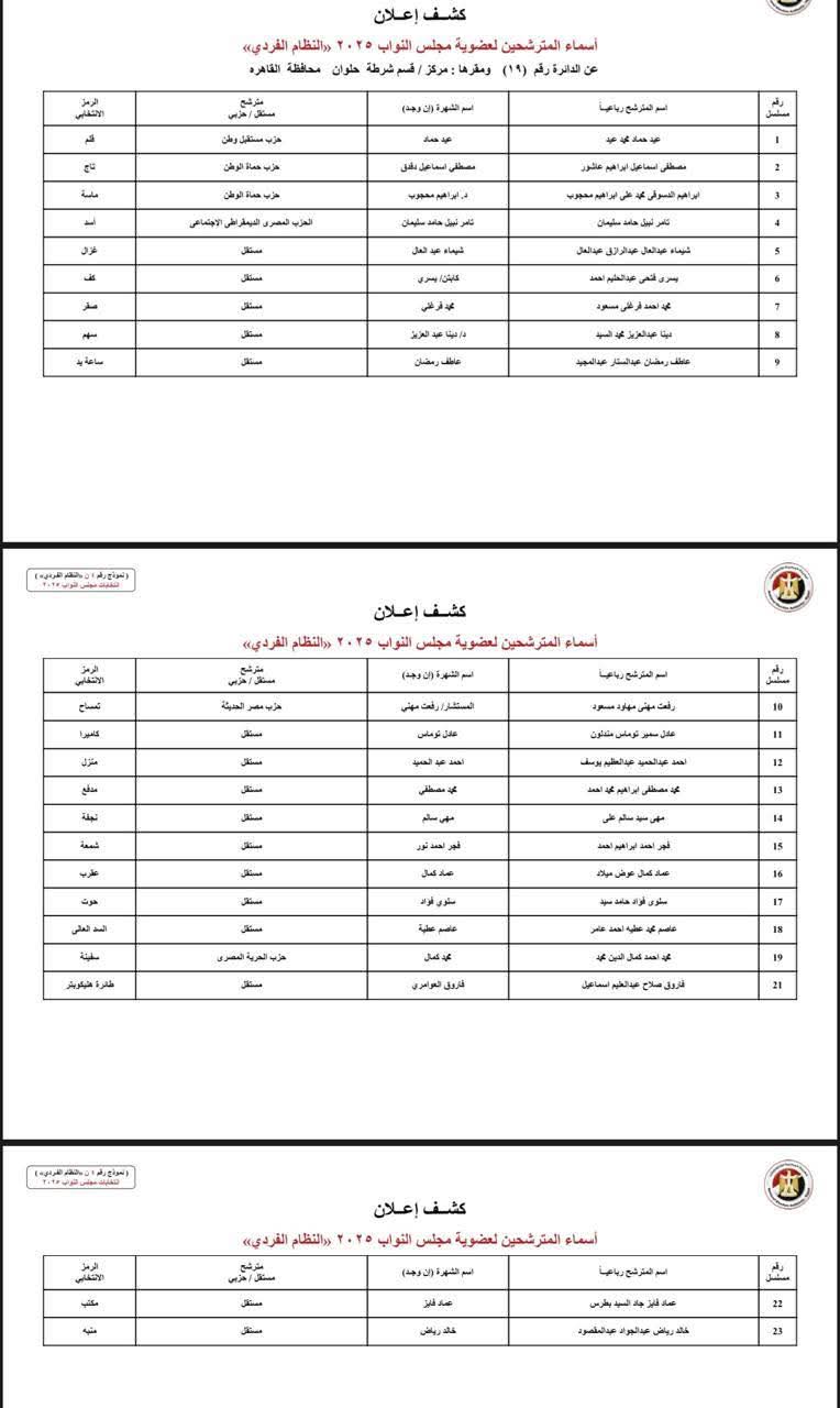 ينشر موقع صدى البلد بالأسماء المرشحين المتقدمين بأوراق ترشحهم لخوض انتخابات مجلس النواب بـ محافظة القاهرة وتبلغ عدد دوائرها 19 دائرة، وهي كالتالي: