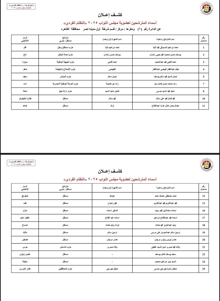 ووصل إجمالي من تقدموا بطلبات الترشح لانتخابات مجلس النواب 2025 إلى 2826 شخصًا، شملت النظام الفردي، والقائمة الوطنية من أجل مصر عن القطاعات الأربع، وقائمة "الجيل" عن قطاعي شرق وغرب الدلتا، والقائمة الشعبية "صوتك لمصر"، وقائمة "نداء مصر" عن قطاع غرب الدلتا.