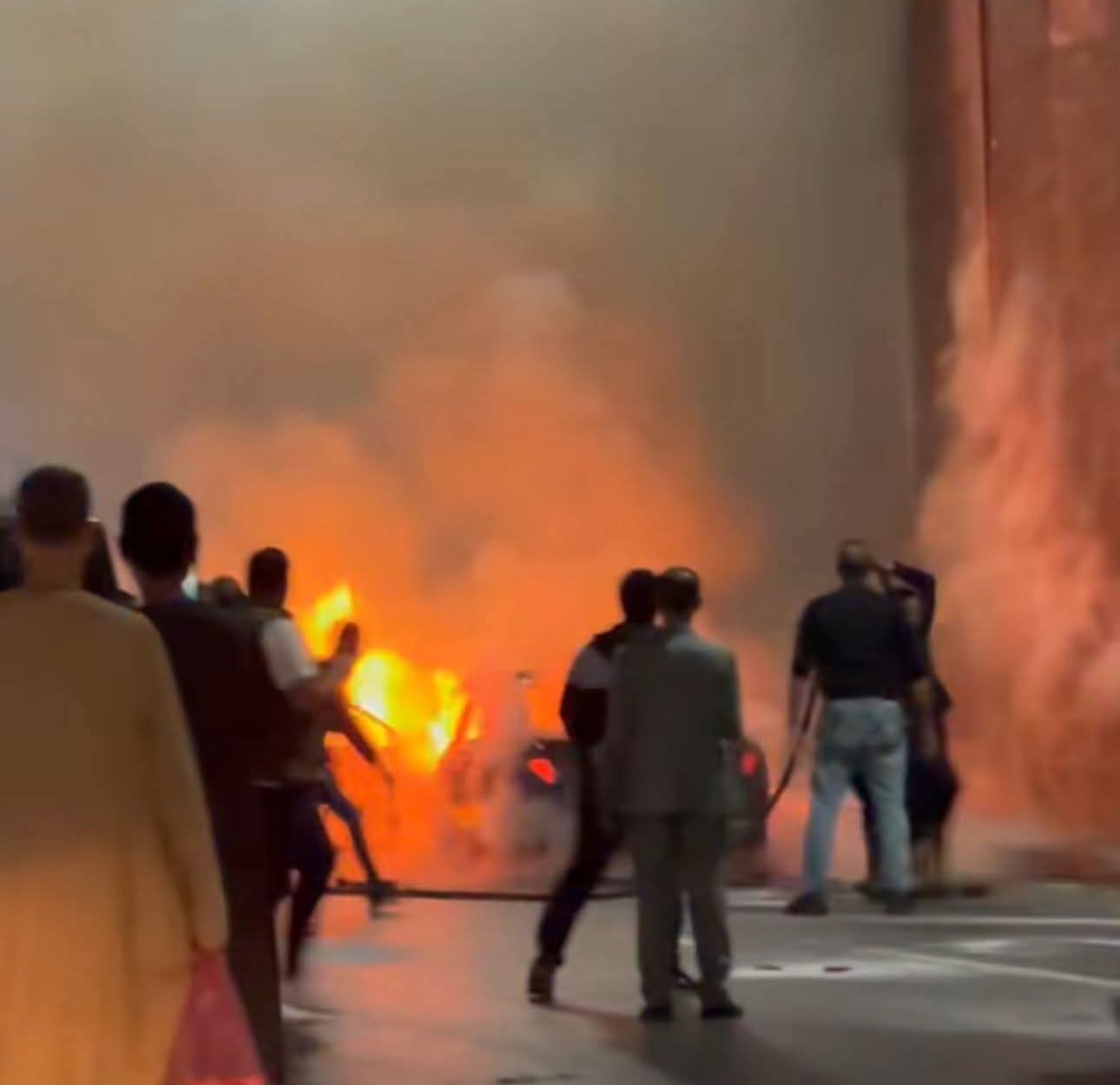 تلقت غرفة النجدة بلاغا باندلاع حريق في سيارة وتصاعد النيران منها بشدة في ميدان الرماية ما تسبب في تعطل حركة المرور وحدوث كثافات بين السيارات.