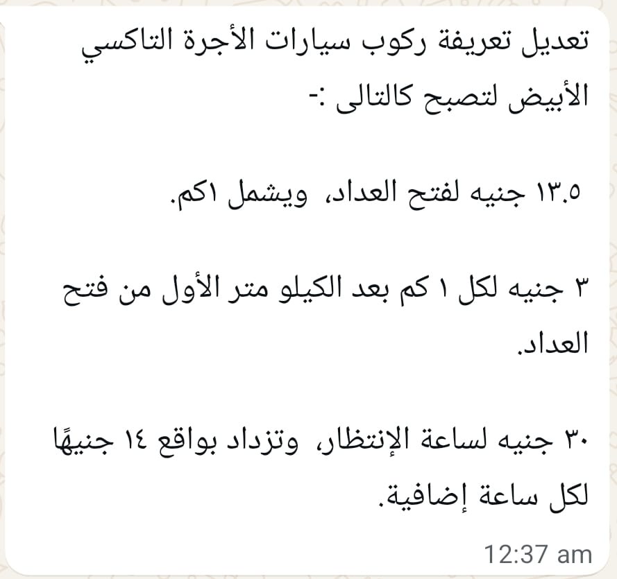 جاء تعديل تعريفة ركوب التاكسى لتصبح كالتالي :-