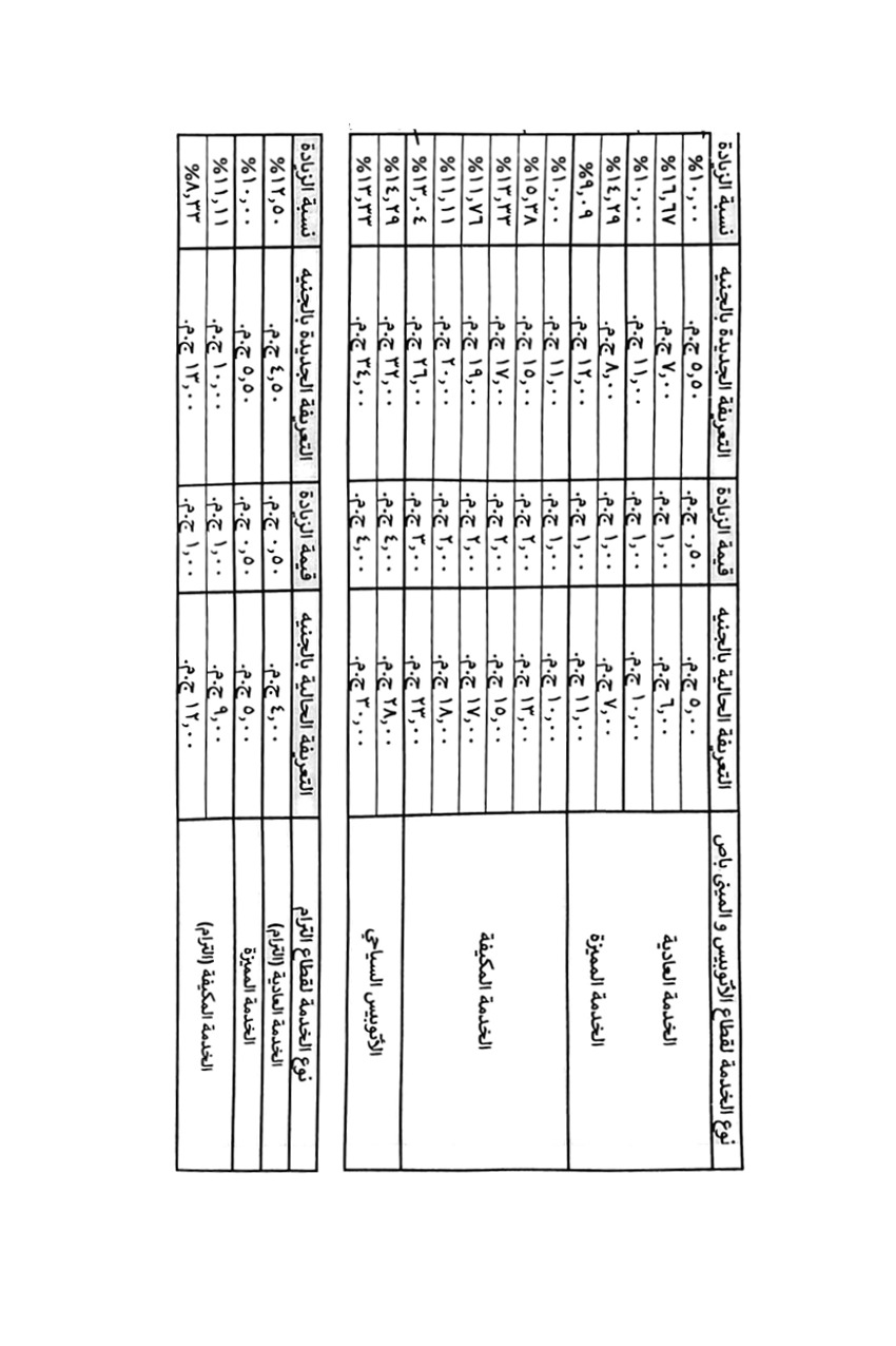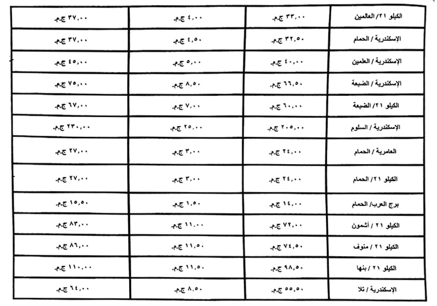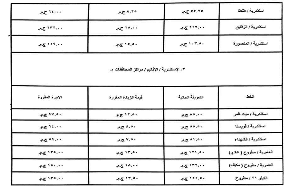 وشدد المحافظ على ضرورة الإعلان الواضح عن التعريفة الجديدة في جميع المواقف والمحطات، مع إلزام السائقين بوضع ملصقات رسمية تتضمن خط السير والأجرة المقررة لكل وسيلة نقل، منعًا لأي تلاعب أو تقسيم غير قانوني لخطوط السير.
