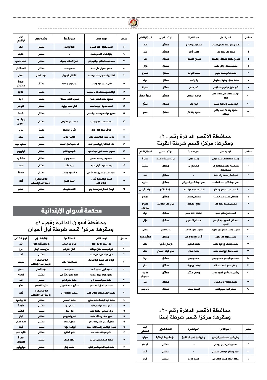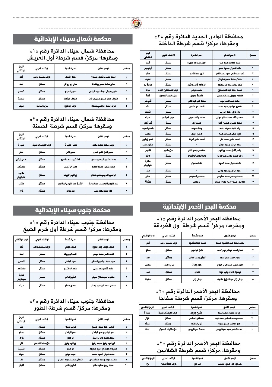 ينشر موقع صدى البلد القائمة الكاملة لأسماء المترشحين في انتخابات مجلس النواب على النظام الفردي بالمحافظات .