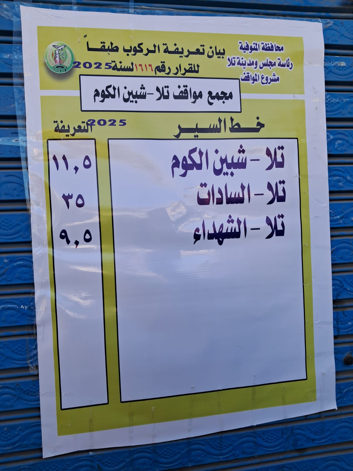 وأكد محافظ المنوفية أنه لن يسمح بأي تهاون أو تجاوز في تطبيق التعريفة الجديدة، موجها بتوقيع غرامات فورية وعقوبات صارمة بحق المخالفين، مشيراً إلى أنه تم تشكيل لجان ميدانية مفاجئة لمتابعة الالتزام بالتعليمات في جميع المواقف بالمحافظة والتعامل الفوري مع أي تجاوزات.