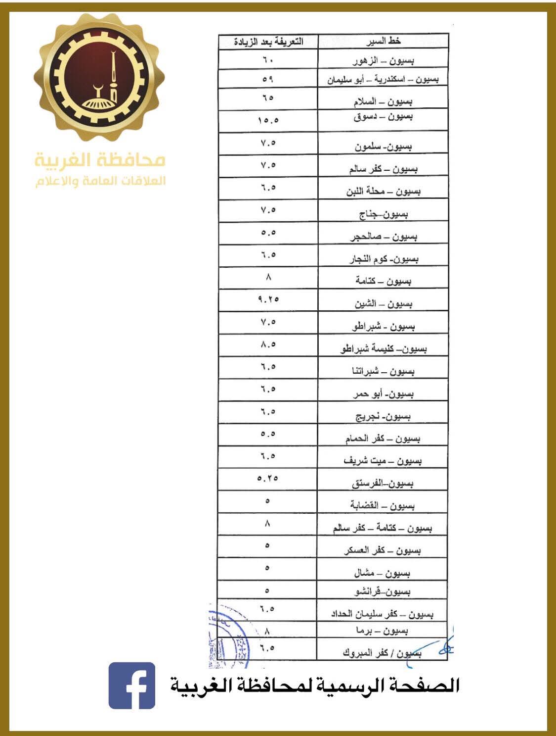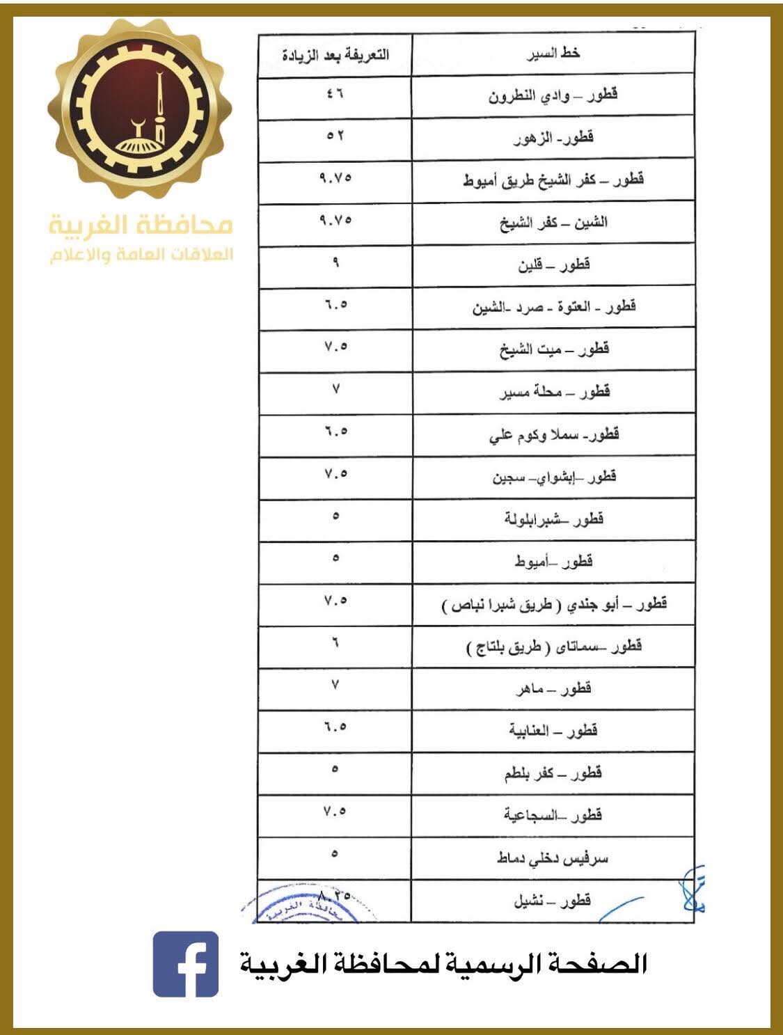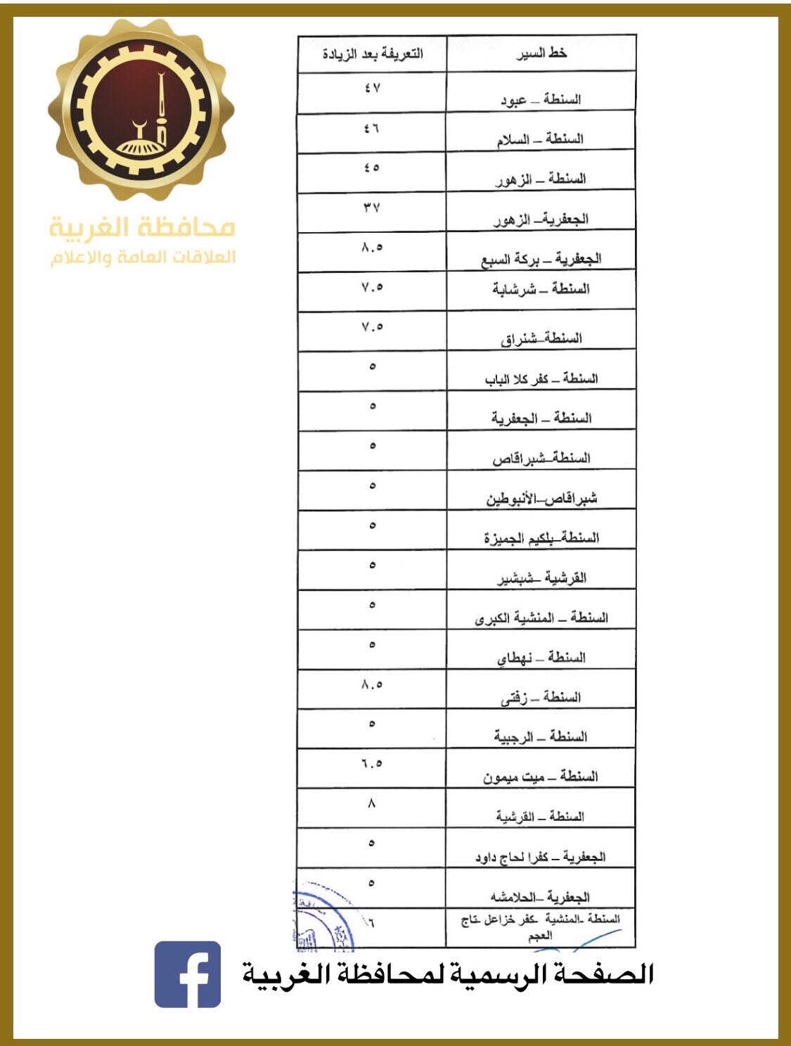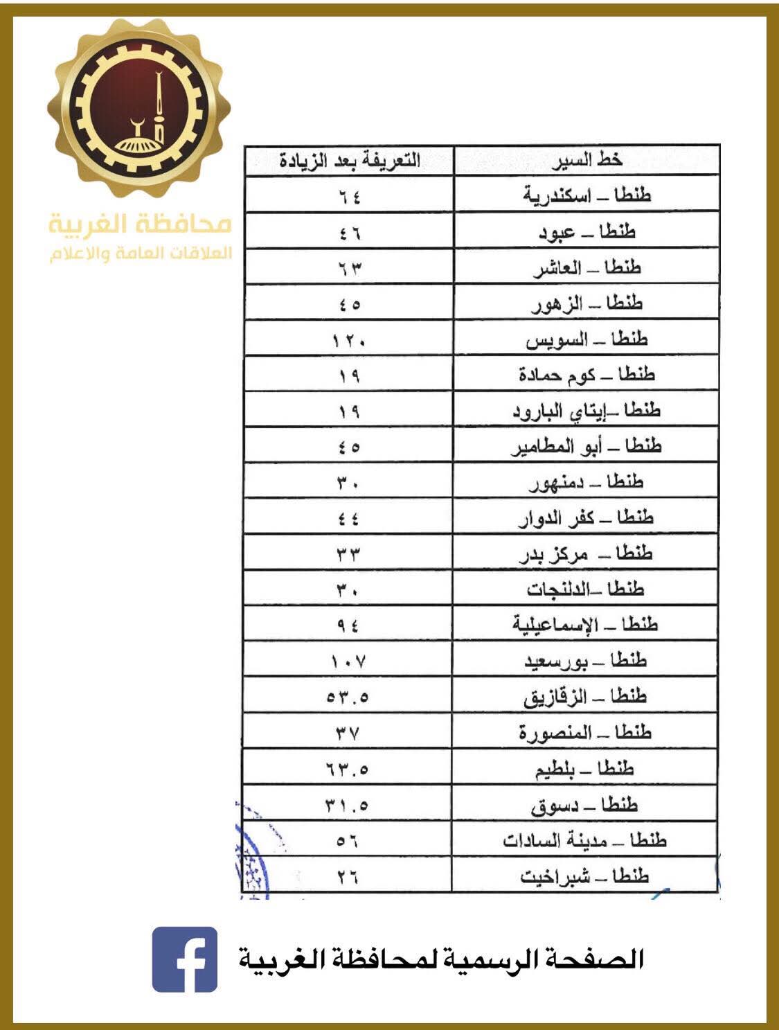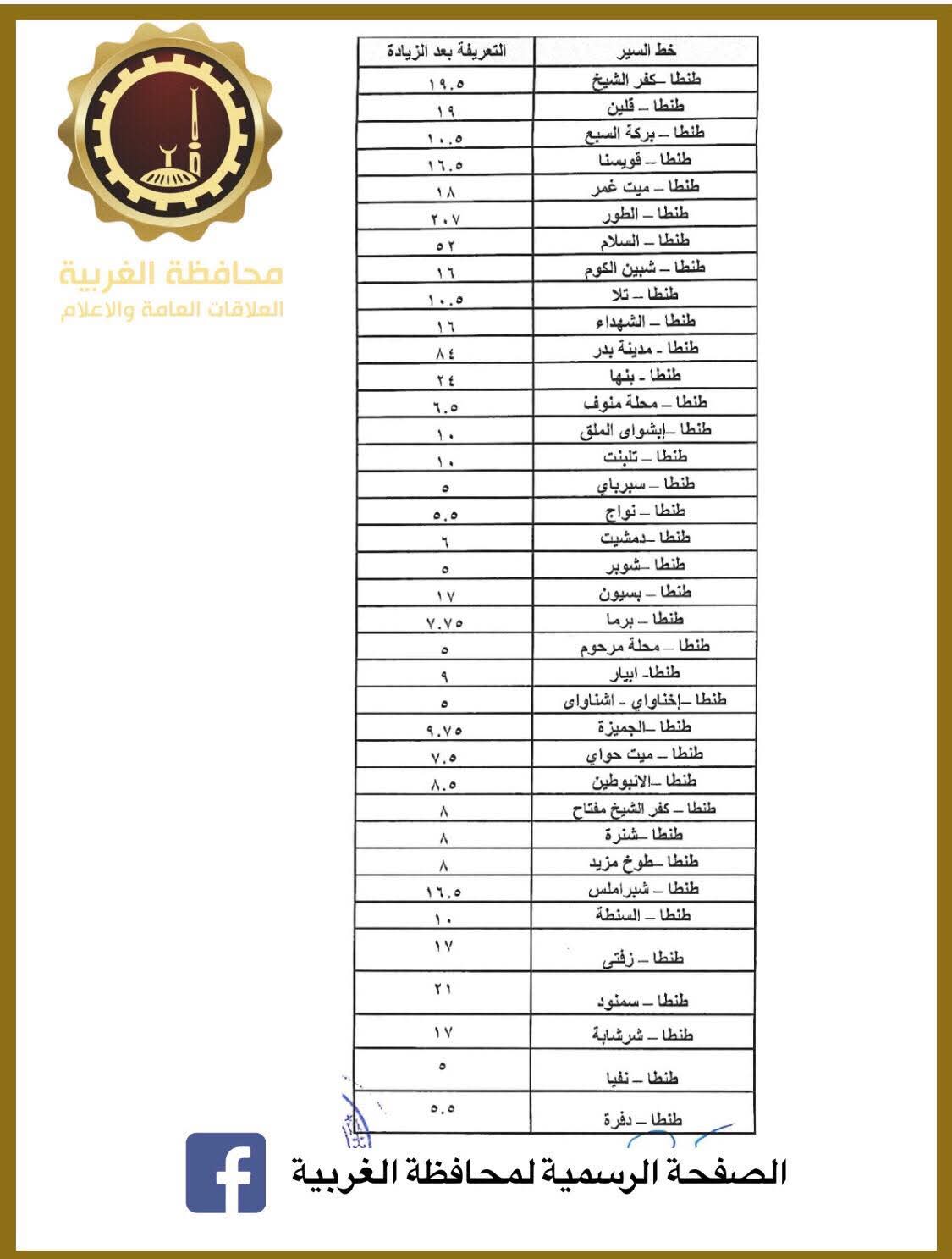 أعلن اللواء أشرف الجندي محافظ الغربية، اعتماد التعريفة الجديدة لوسائل النقل الداخلي والخارجي بجميع مراكز ومدن المحافظة، وذلك عقب قرار لجنة التسعير التلقائي للمنتجات البترولية بتحريك أسعار الوقود اعتبارًا من الساعة السادسة صباح اليوم الجمعة 17 أكتوبر 2025، مع تثبيت الأسعار داخل السوق المحلي لمدة عام كامل كحد أدنى.