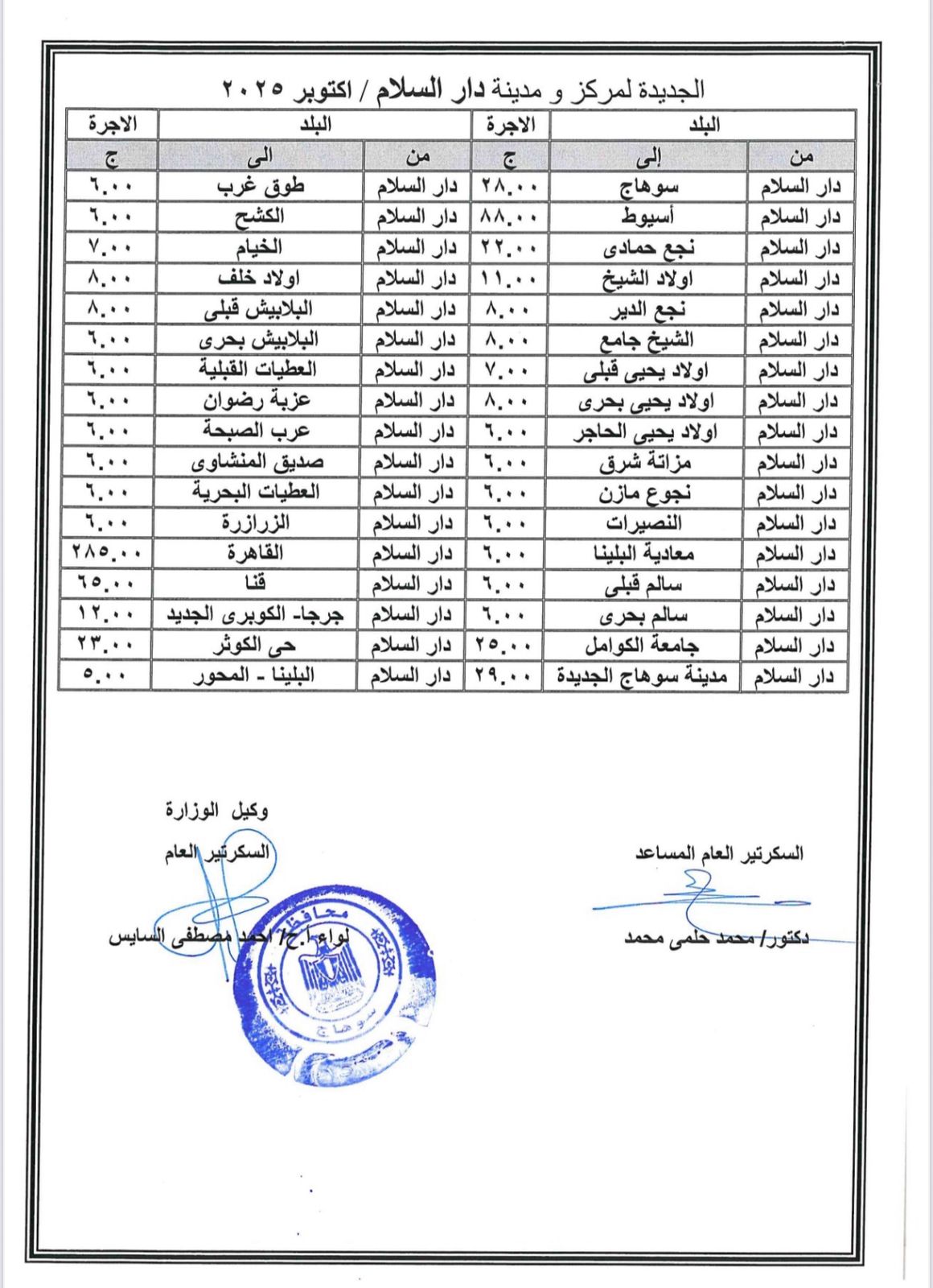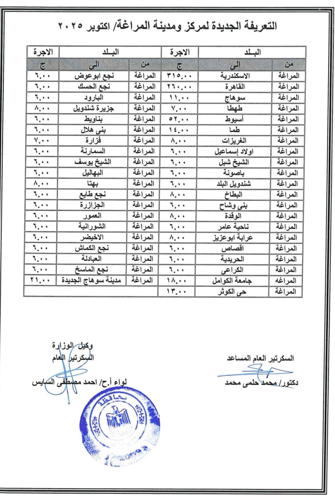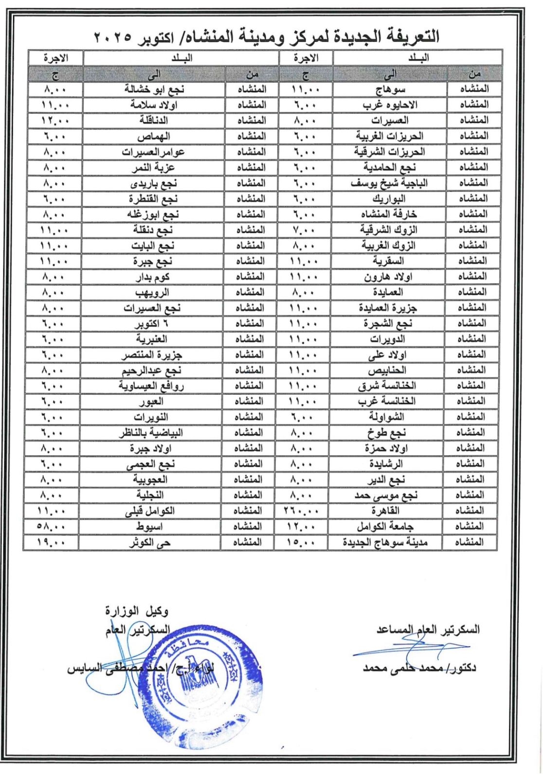 أصدر اللواء الدكتور عبد الفتاح سراج، محافظ سوهاج، القرار رقم ٧٢٦ لسنة ٢٠٢٥، بشأن تعديل تعريفة الركوب لسيارات الأجرة العاملة بنطاق المحافظة.