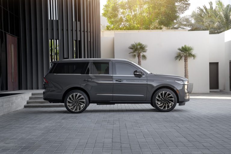 تقدم لينكون نافيجيتور الجديدة ملامح تصميمية توازن بين الحداثة والقوة، واجهتها الأمامية ترتكز على شبك من ألومنيوم الساتان، يندمج بسلاسة مع شريط إضاءة يمتد أفقياً عبر شعار لينكون، وفي الخلف، يضيف الباب المقسوم طابعاً عمليًا يسهل الوصول ويوفر نقطة جلوس مثالية خلال التوقفات في الرحلات أو التخييم.