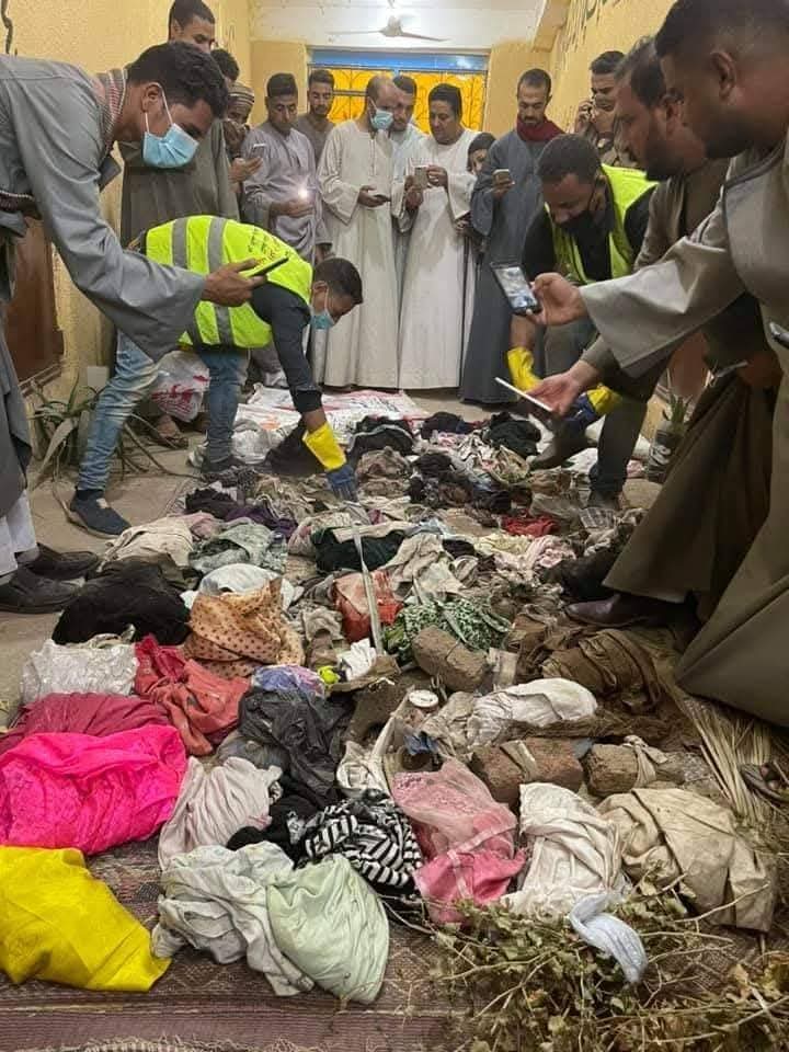 في مشهد تقشعر له الأبدان، شهد مركز البلينا جنوب محافظة سوهاج واقعة غامضة أثارت فزع الأهالي، بعدما عثرت حملة تنظيف المقابر على أعمال سحر وطلاسم مكتوبة ومدفونة في باطن الأرض بين القبور.