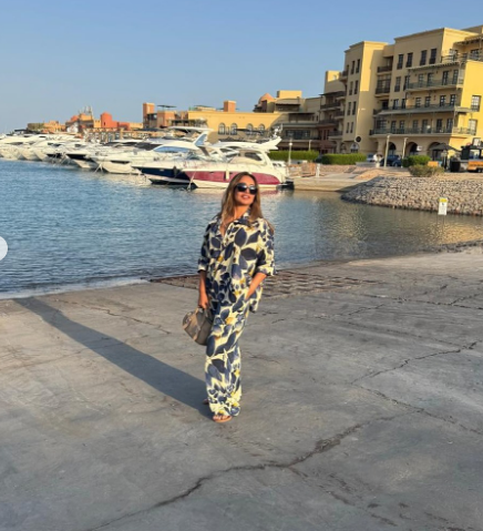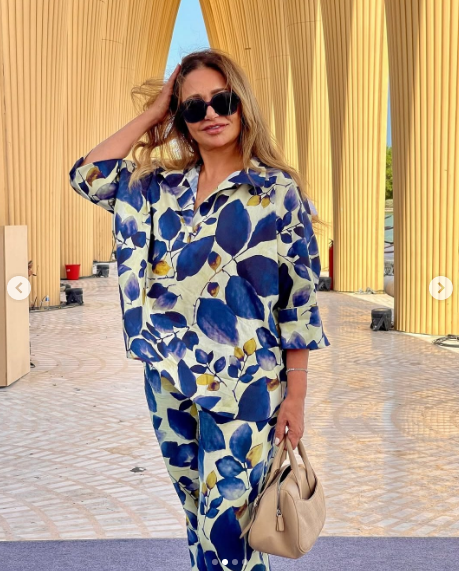 ظهرت ليلي علوي بإطلالة عصرية، حيث ارتدت بنطلون و قميص من نفس القماش والنقشة وهي من أحدث صيحات موضة 2025، كما كشفت هذه الإطلالة عن ذوقها الراقي.
