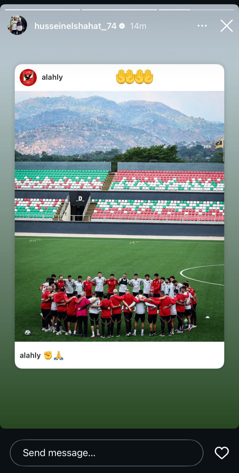وشارك حسين الشحات ستوري للفريق عبر حسابه على انستجرام، متمنيا لهم التوفيق بعد غيابه للإصابة عن المشاركة.