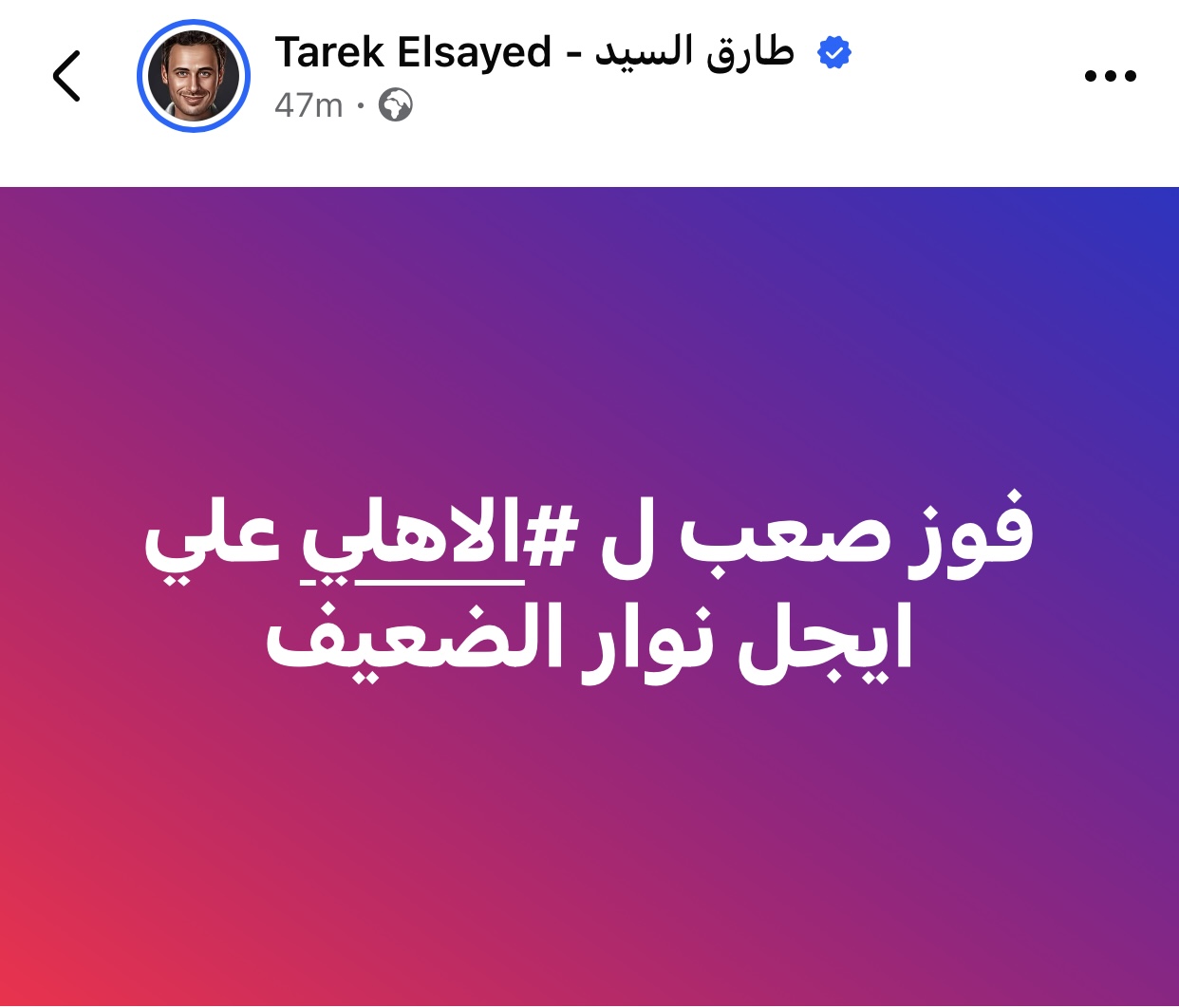 وكتب السيد عبر حسابه على فيسبوك: “فوز صعب للأهلي على إيجل نوار الضعيف”.