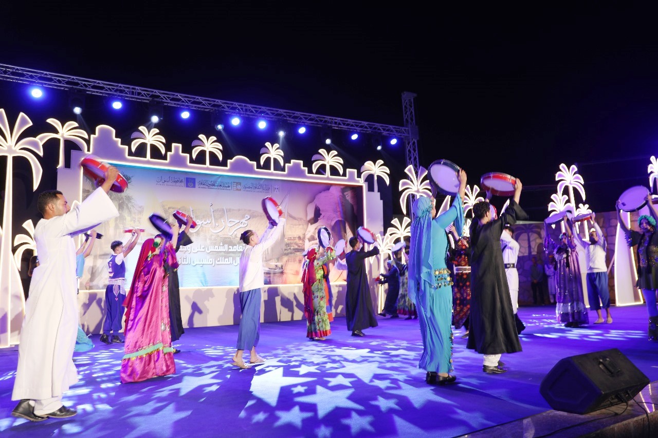 وسط حضور جماهيرى من أهالى محافظة أسوان وضيوفها من الزائرين ، وعلى أنغام الفقرات الفنية والفلكورية لفرق الفنون الشعبية .