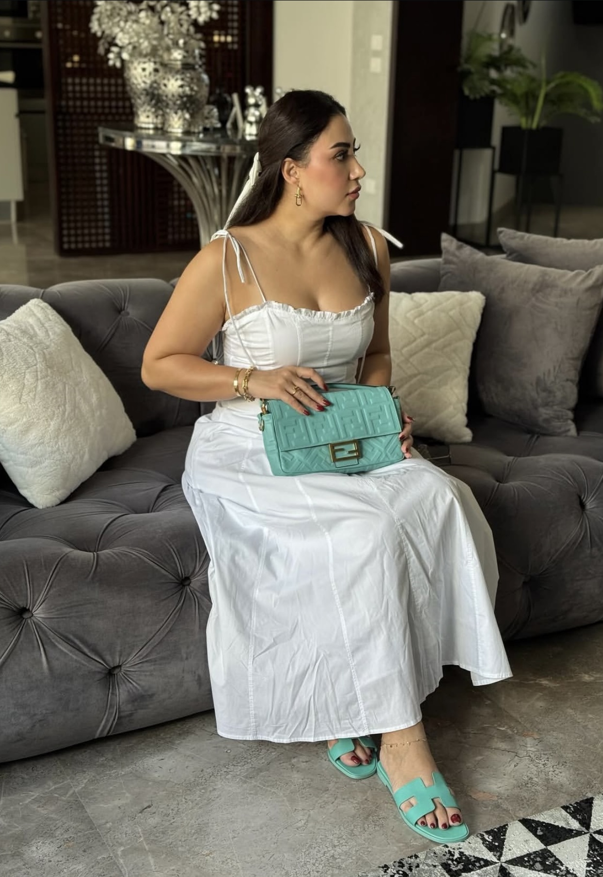 وظهرت بوسي مرتدية إطلالة صيفية ناعمة، ذا تصميم أنيق؛ لتكشف عن جمالها ورشاقتها.