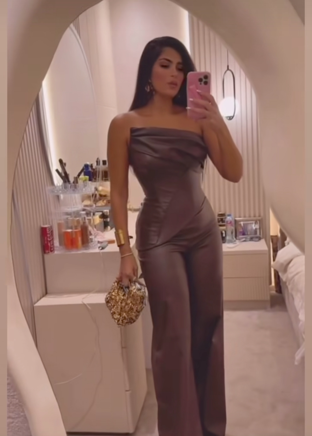 وتألقت رانيا أبو النصر ، مرتديه سوت جلد باللون البني ذا تصميم جذاب لتكشف عن جمالها ورشاقتها.
