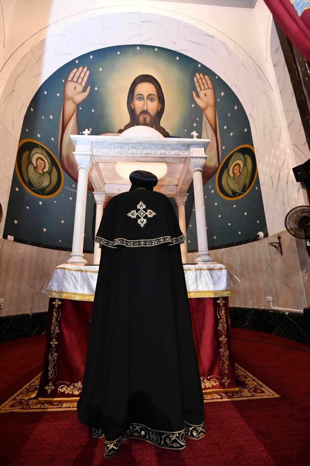 واقيمت صلوات رفع بخور عشية بمشاركة الآباء، رتل بعدها خورس الشمامسة بعض الألحان وأنشد فريق كورال الكنيسة عددًا من الترانيم، وألقى كهنة الكنيسة عدة كلمات رحبوا خلالها بقداسة البابا وجاءت كلماتهم مشحونة بمشاعر محبة وتقدير للأب والراعي.