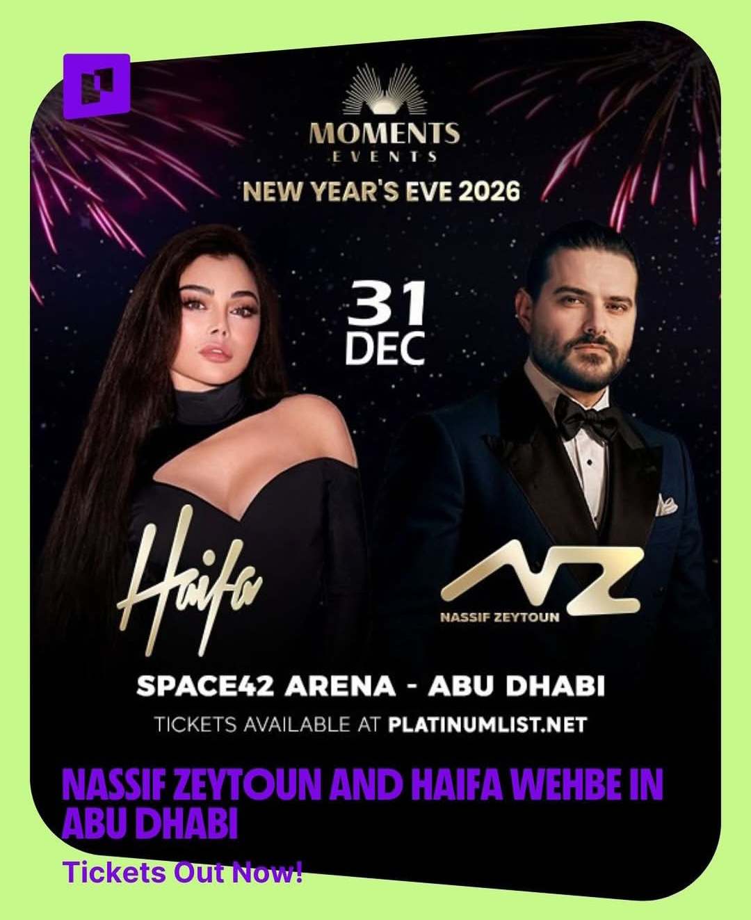 تستعد الفنانة هيفاء وهبي، لإحياء حفل ليلة رأس السنة الميلادية مع الفنان ناصيف زيتون، في مدينة أبوظبي بدولة الإمارات العربية المتحدة، يوم ,31 ديسمبر.