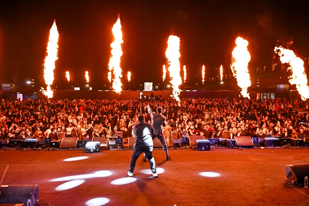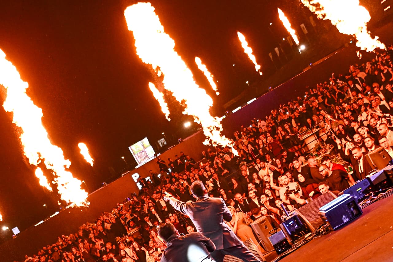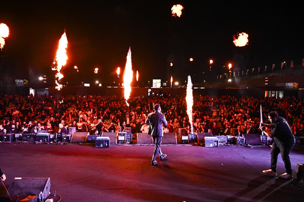 وصعد حماقي على خشبة المسرح وسط حالة حماسية من هتافات وصيحات الاستقبال الحار للجمهور والتي امتزجت مع fire works مبهر للفنان أحمد عصام امتدت طوال الحفل مصاحبة لموسيقي اغاني حماقي والتي اضفت المزيد من آجواء الإثارة .
