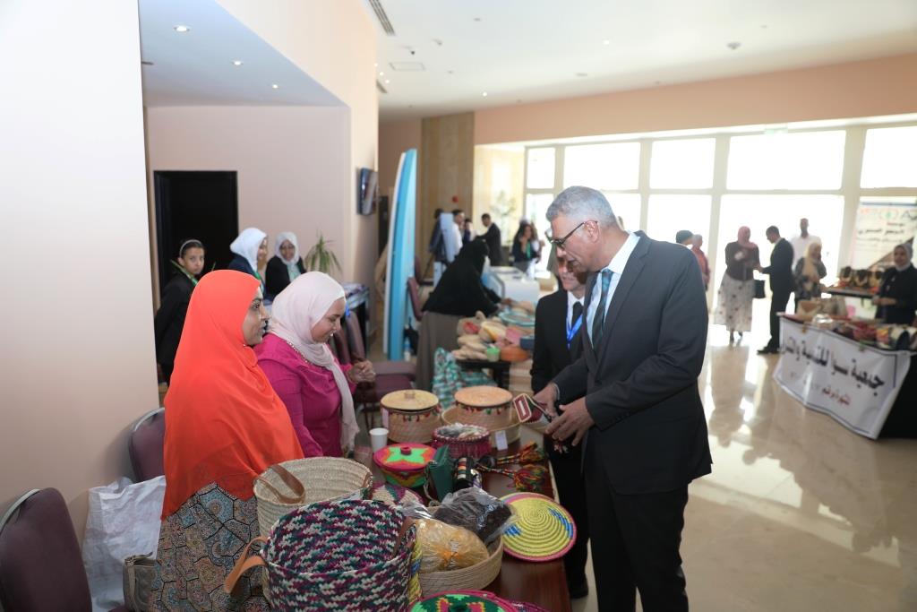حرص اللواء دكتور إسماعيل كمال محافظ أسوان على تفقد معرض المشغولات اليدوية والمنتجات البيئية المقام داخل إحدى القاعات على هامش فعاليات منتدى أسوان للسلام والتنمية المستدامين .