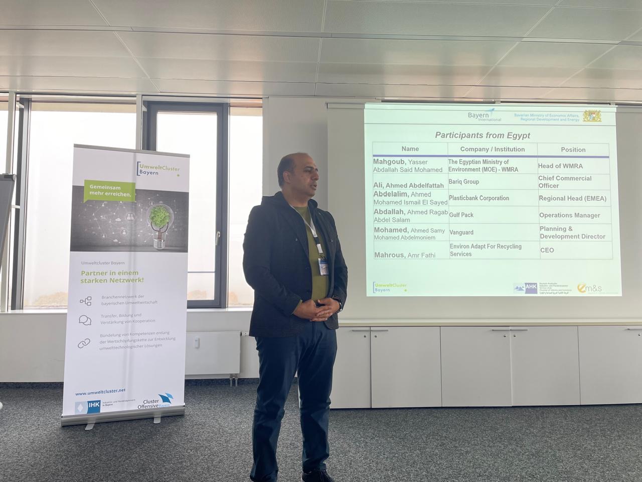 فى إطار توجيهات الدكتورة منال عوض وزيرة التنمية المحلية والقائم بأعمال وزير البيئة، بالعمل على تطوير منظومة إدارة المخلفات ومتابعة كافة التكنولوجيات والمستجدات العالمية فى هذا المجال ، شارك الاستاذ ياسر عبد الله الرئيس التنفيذي لجهاز تنظيم إدارة المخلفات فى برنامج تقنيات إعادة التدوير وإدارة المخلفات، الذى عقد بولاية بفاريا الألمانية ، بدعوة من الوكالة الألمانية للتعاون الدولى GIZ، وبمشاركة ممثلى عدد من الشركات العاملة فى مجال المخلفات بمصر ( العربية للأسمنت - تيتان للأسمنت - زيرو كربون - بريق - بلاستيك بنك -ارتقاء - انفيرون آدابت)