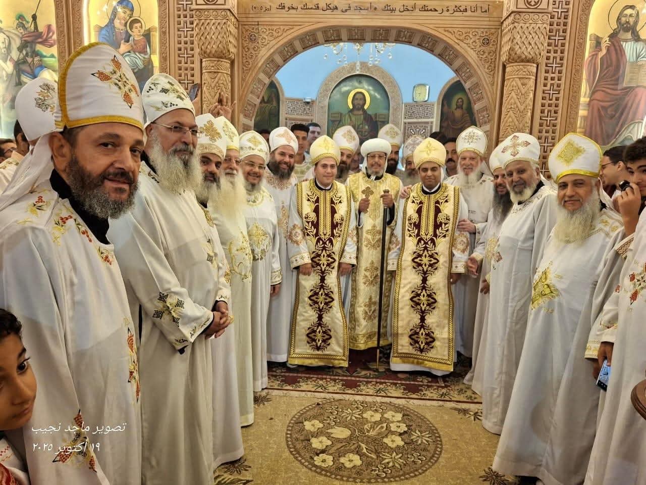 صلى نيافة الأنبا مرقس مطران شبرا الخيمة القداس الإلهي، صباح اليوم، في كنيسة الشهيد مار جرجس (مقر المطرانية)، وشاركه عدد كبير من الآباء الكهنة، وسام نيافته عقب صلاة الصلح الشماس بيشوي سامي كاهنًا جديدًا للخدمة بكنيسة الشهيد الأمير تادرس في بهتيم باسم القس أقلاديوس، والشماس بيتر حشمت كاهنًا جديدًا للخدمة بكنيسة الشهيدة دميانة والقديس الأنبا توماس السائح في منطقة أرض الجنينة باسم القس أرشليدس.