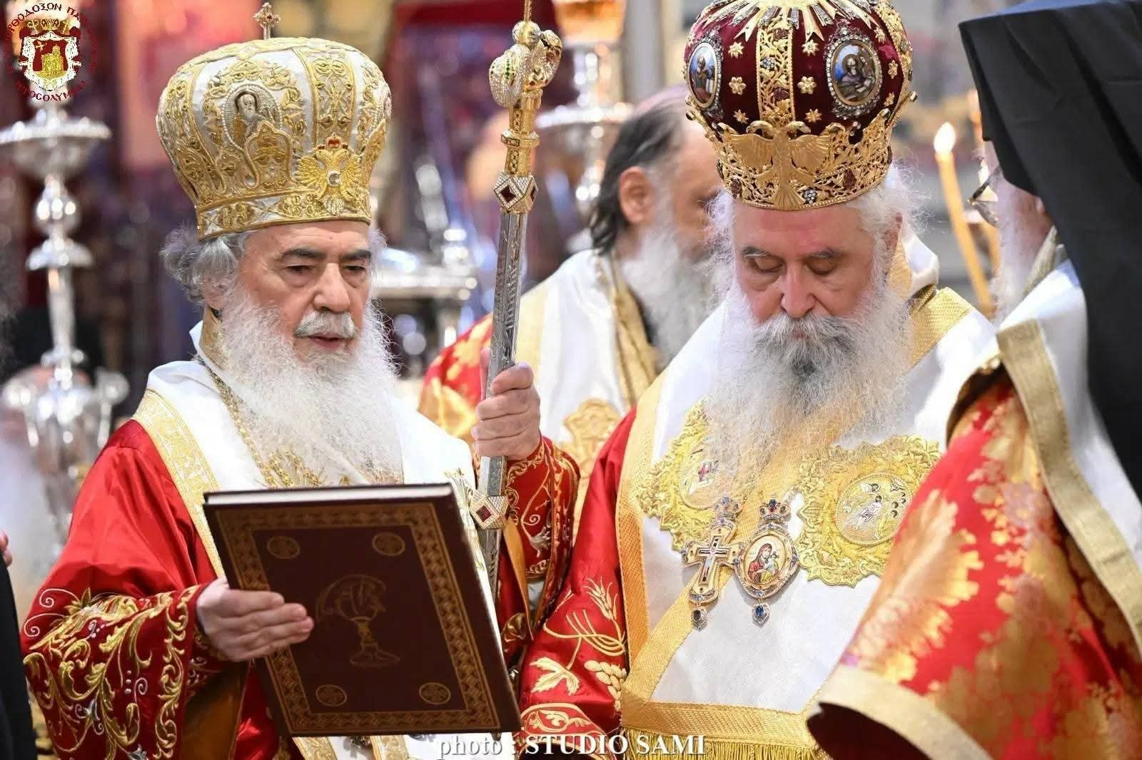 أقيمت في كنيسة القيامة بالقدس، اليوم، صلوات سيامة قدس الأرشمندريت سيميون بابادوبولوس السادس رئيسا لأساقفة سيناء وفاران ورائيثو، رئيسا لدير القديسة كاترينا.