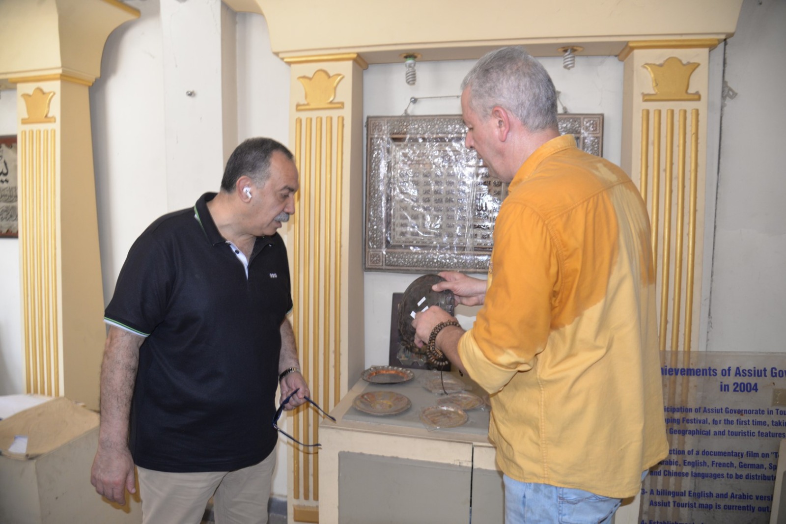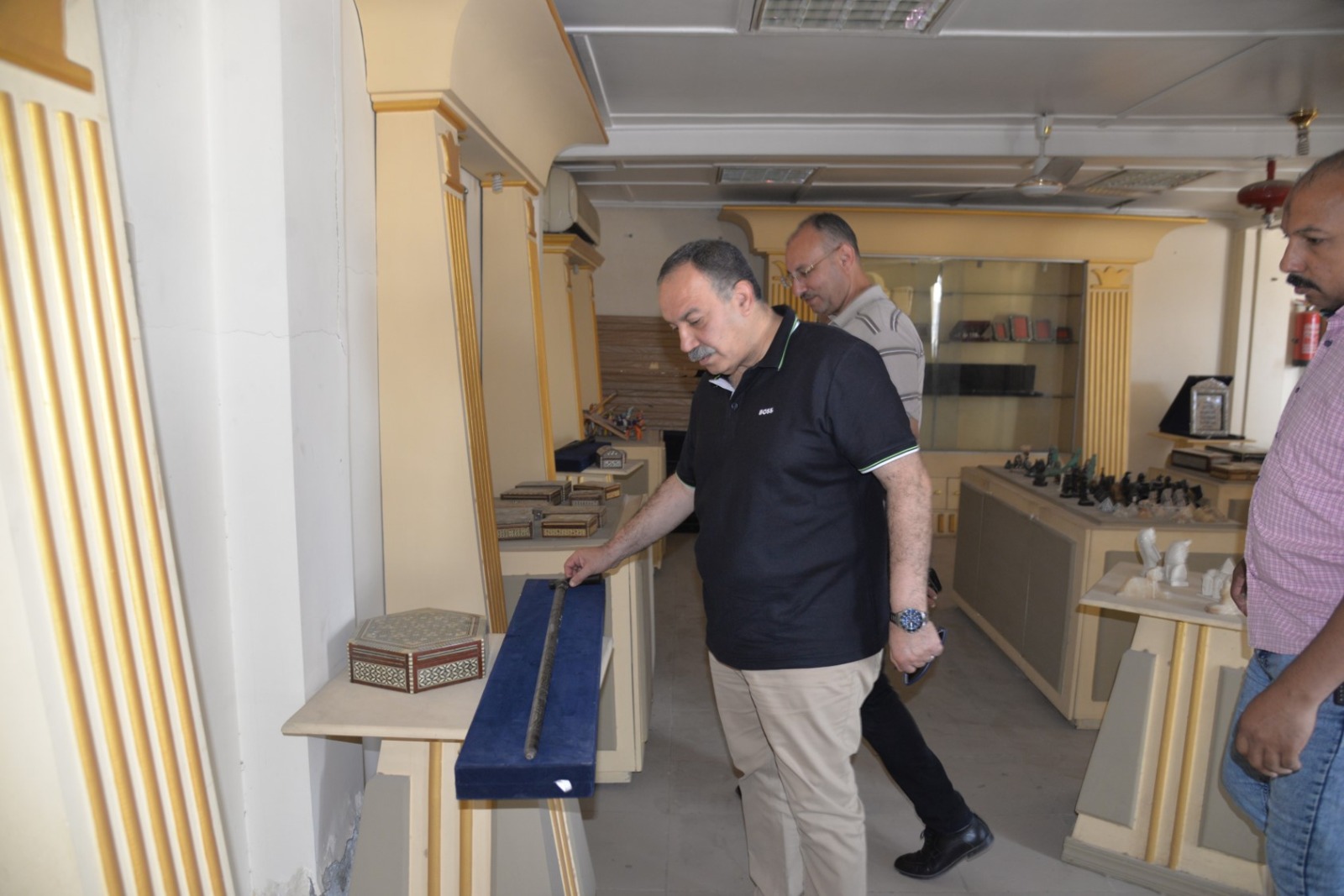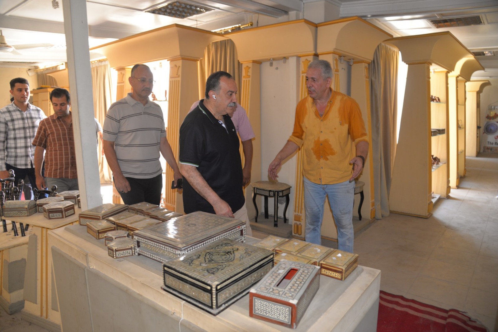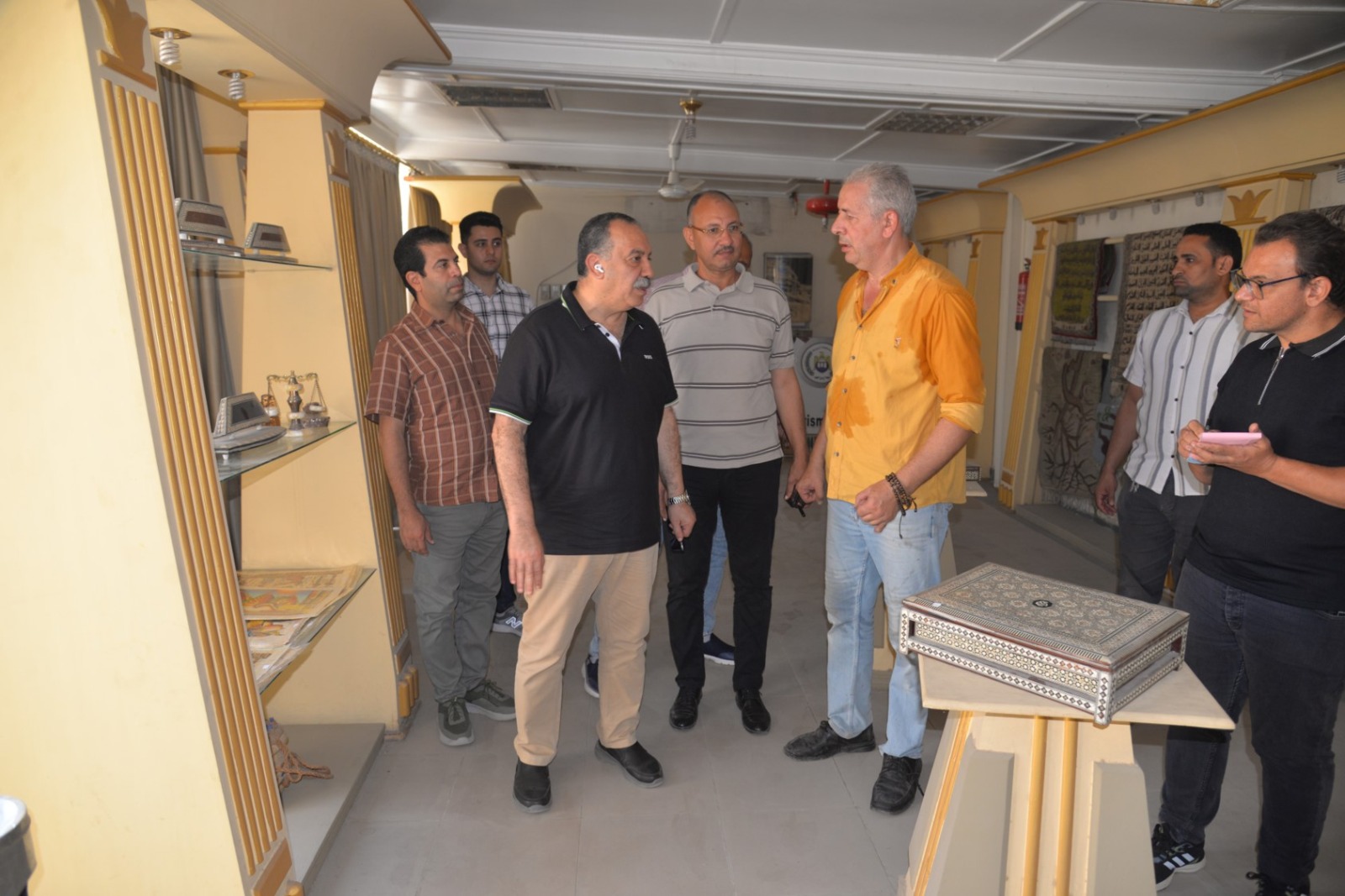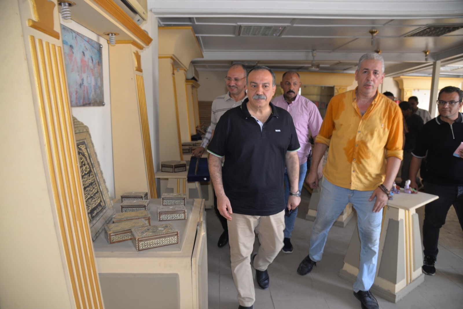 وخلال الجولة، تفقد محافظ أسيوط المعرض الذي يضم مجموعة متميزة من المنتجات اليدوية والتراثية، من بينها المشغولات الخشبية والجلدية، والتحف المصنوعة من الصدف والأحجار، والمجسمات الفرعونية، والمشغولات النحاسية، إلى جانب منتجات السجاد والكليم اليدوي الذي تشتهر به محافظة أسيوط كإحدى الحرف الأصيلة التي تعكس التراث المصري القديم.