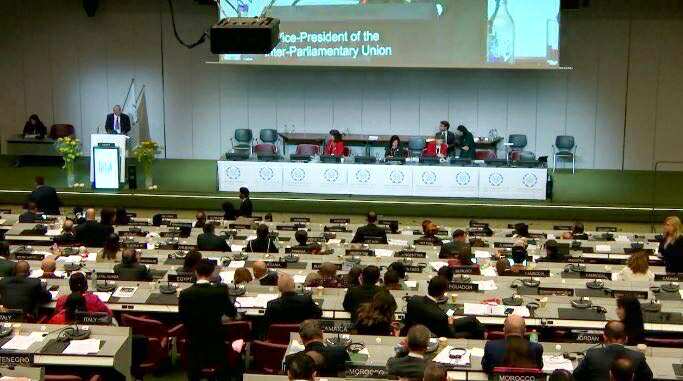 شارك المستشار الدكتور حنفي جبالي رئيس مجلس النواب في أعمال الجمعية العامة الـ 151 للاتحاد البرلماني الدولي، والمُنعقدة في جنيف، حيث ألقى كلمة بشأن موضوع المناقشة العامة للمؤتمر" الالتزام بالمعايير الإنسانية ودعم العمل الإنساني في أوقات الأزمات "، جاء أبرز ما فيها على النحو التالي: