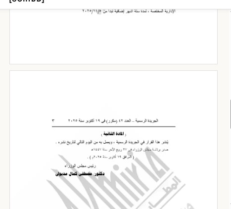 ونصت المادة الأولى من القرار على: «تمد المدة المقررة لتقديم طلبات التصالح في بعض مخالفات البناء إلى الجهة الإدارية المختصة، لمدة ستة أشهر إضافية تبدأ من 5/11/2025».