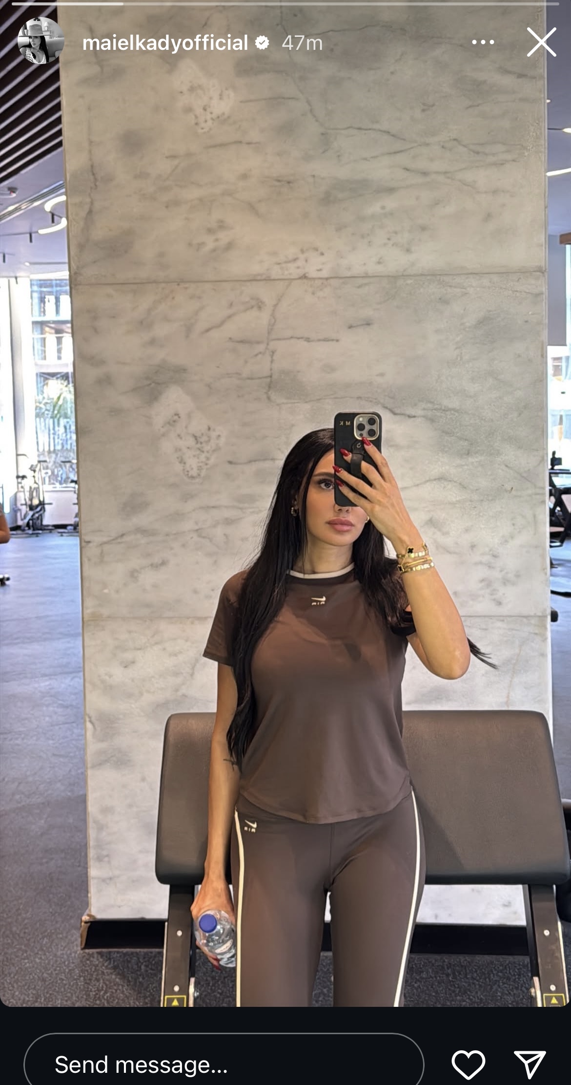 وخطفت مي القاضي ، أنظار جمهورها بإطلالة جذابة لافته من الجيم مرتدية ملابس رياضية،كشفت عن جمالها ورشاقتها.