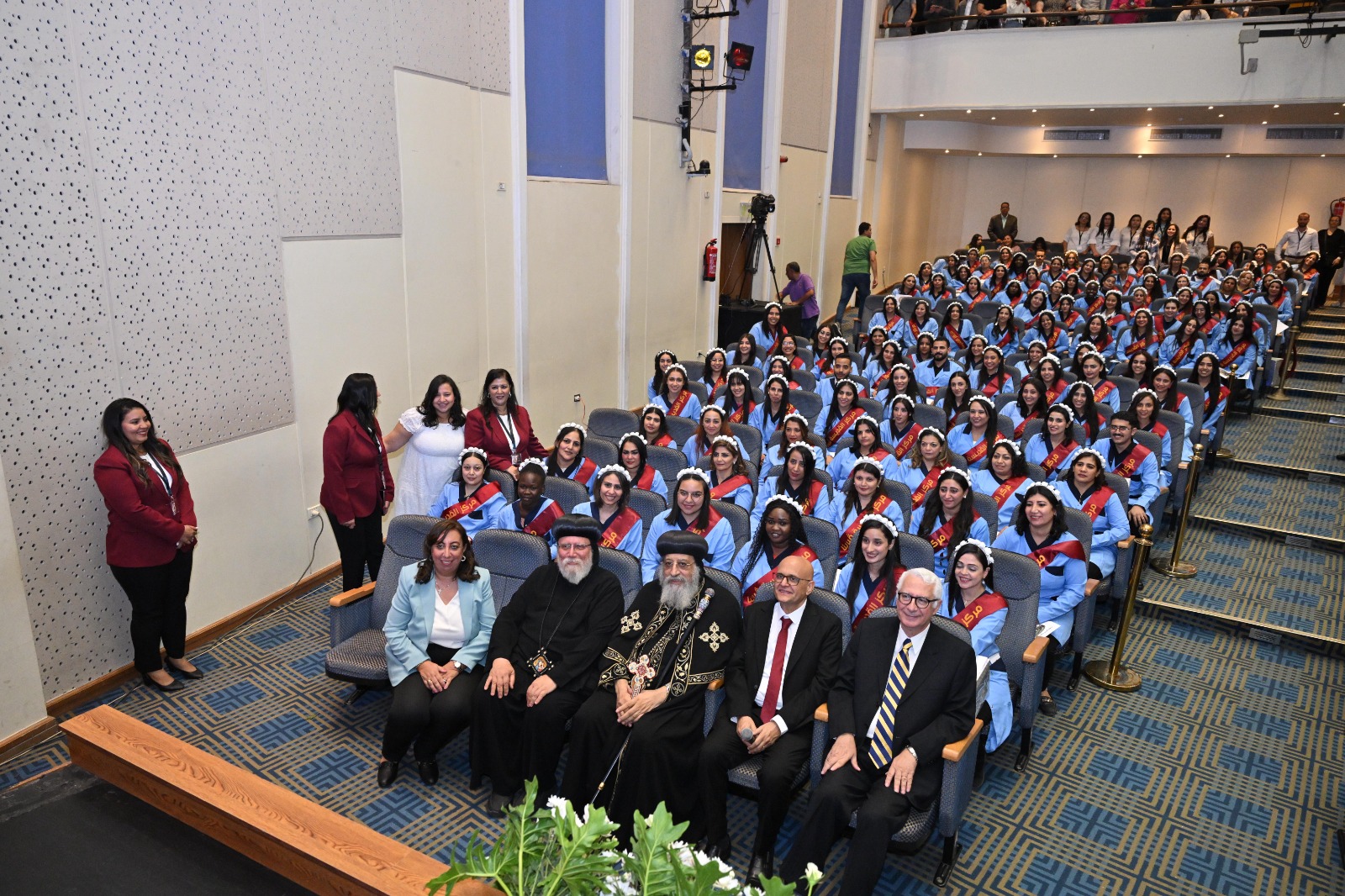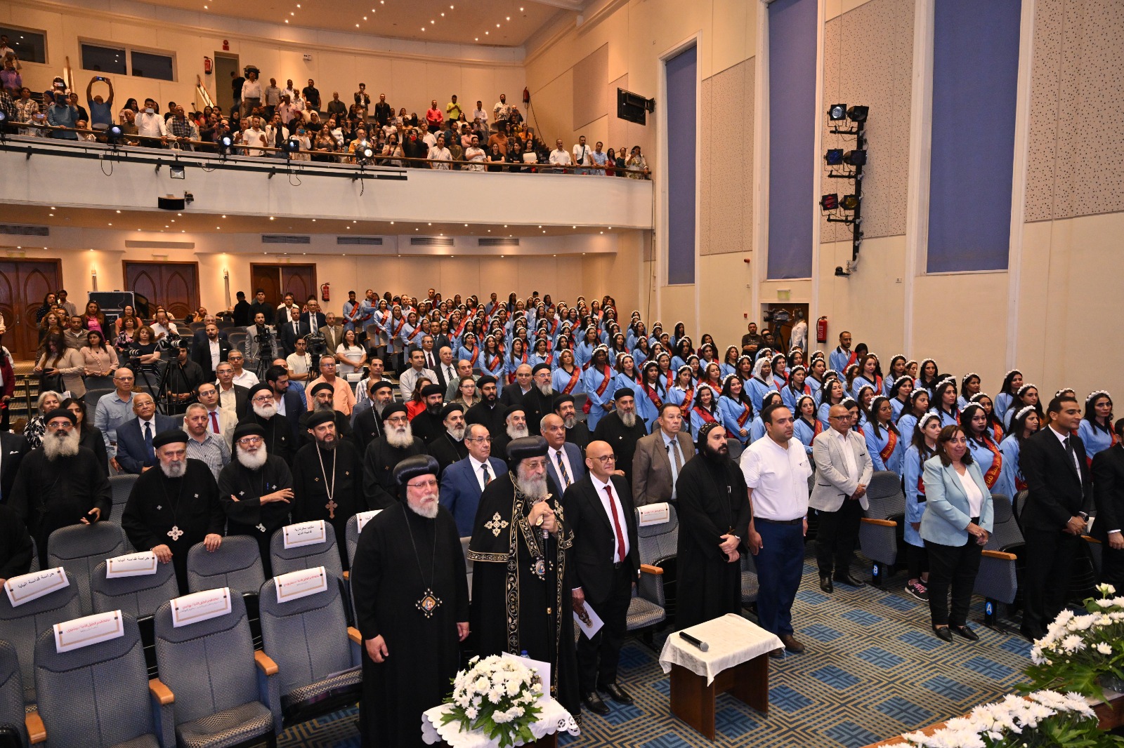 وعقب الكلمة وزع قداسته شهادات التخرج على الخريجين وكرم أعضاء هيئة التدريس، ثم تلا الخريجون التعهد الخاص بهم.