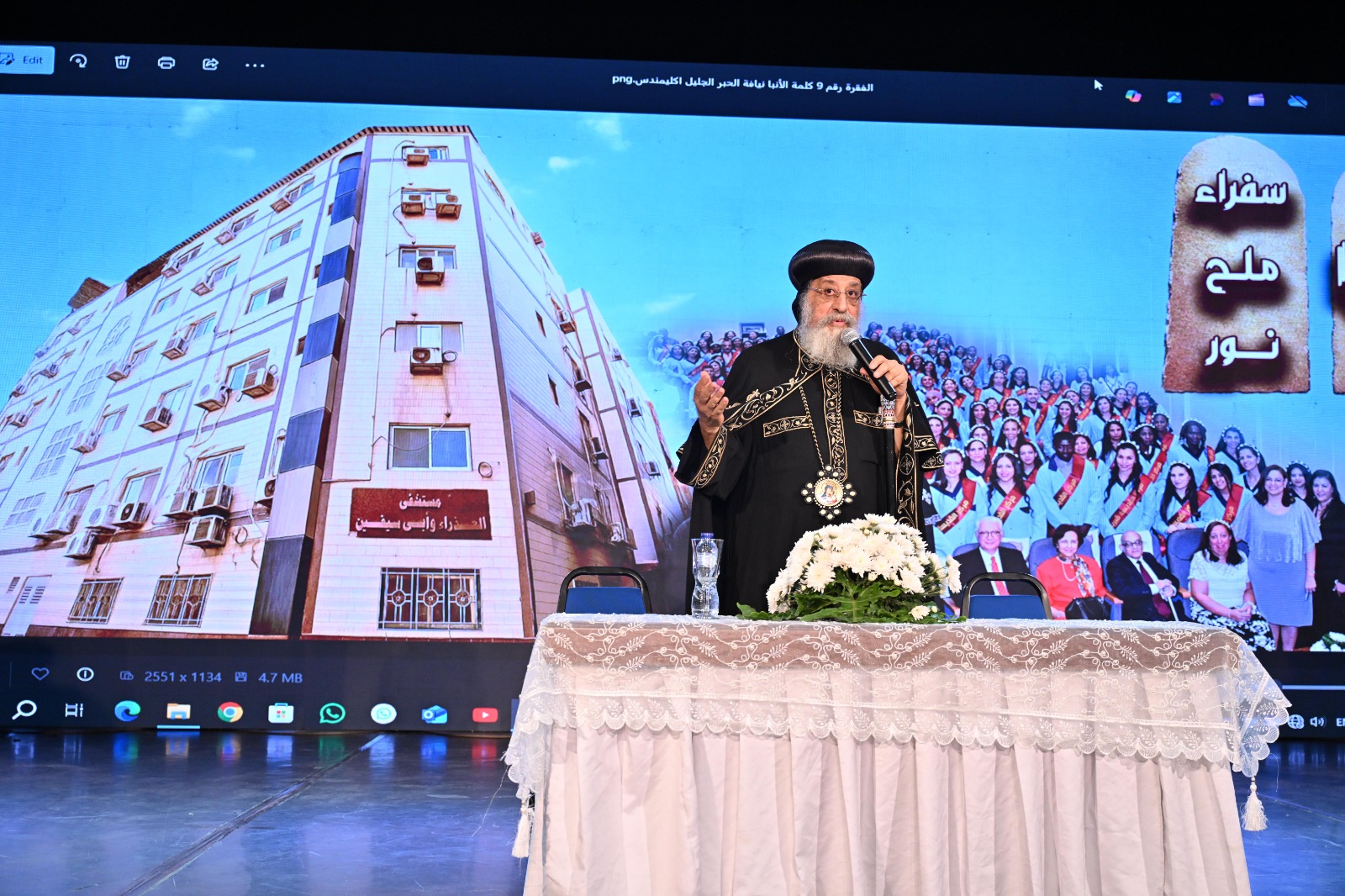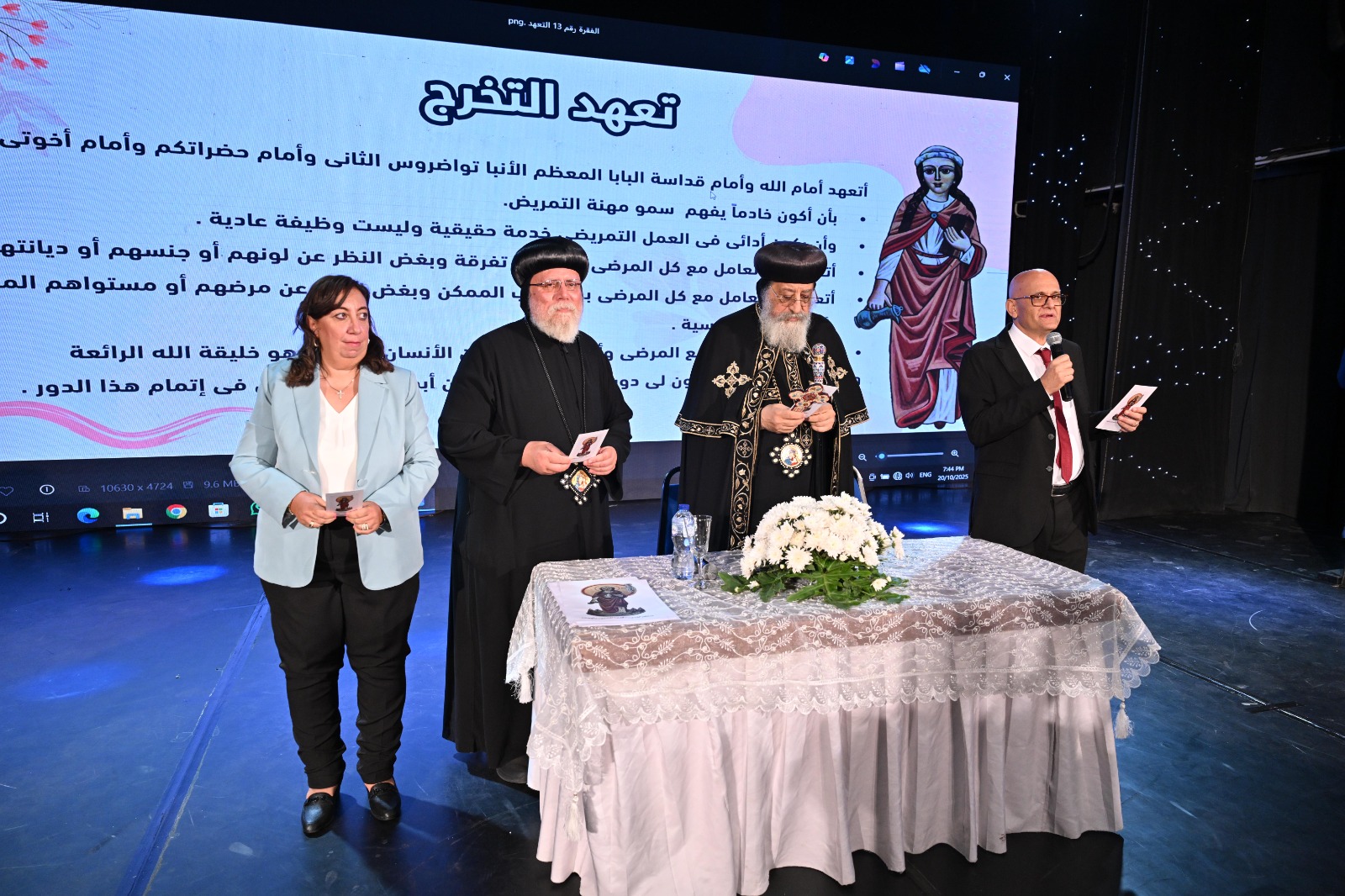 وأشاد قداسته بالاهتمام بغرس الجانب الروحي في نفوس المتدربين بالمركز ليكون جانبًا أساسيًّا خلال عملهم في مجال التمريض بحيث يلمس المرضى حضور الله من خلالهم. مشجعًا إياهم على المزيد من التعلم والتطور في مجال التمريض.