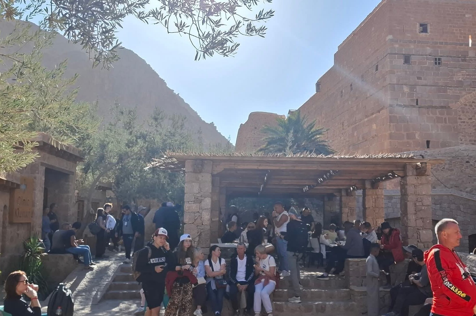 شهد دير سانت كاترين إقبال كبير من السياح من مختلف الجنسيات على زيارة معالمه والاستمتاع بأجواء روحانيه مباركة على أرض التجلي.