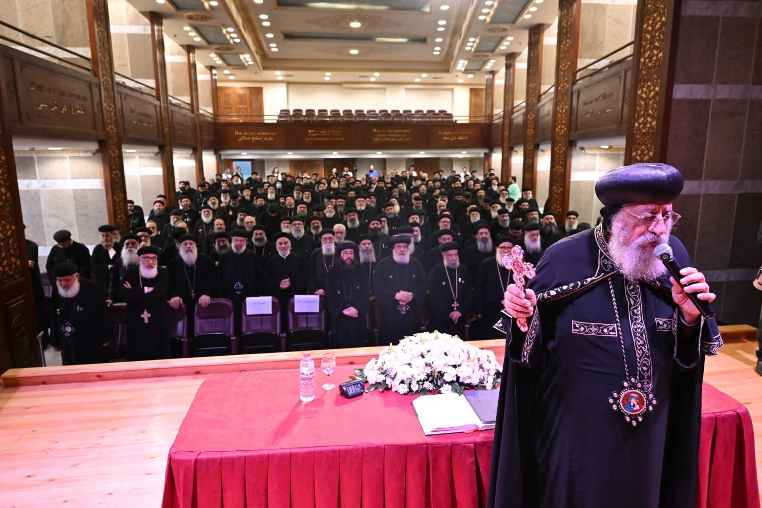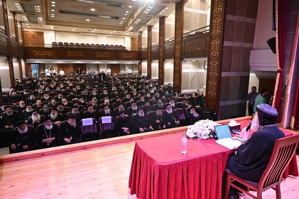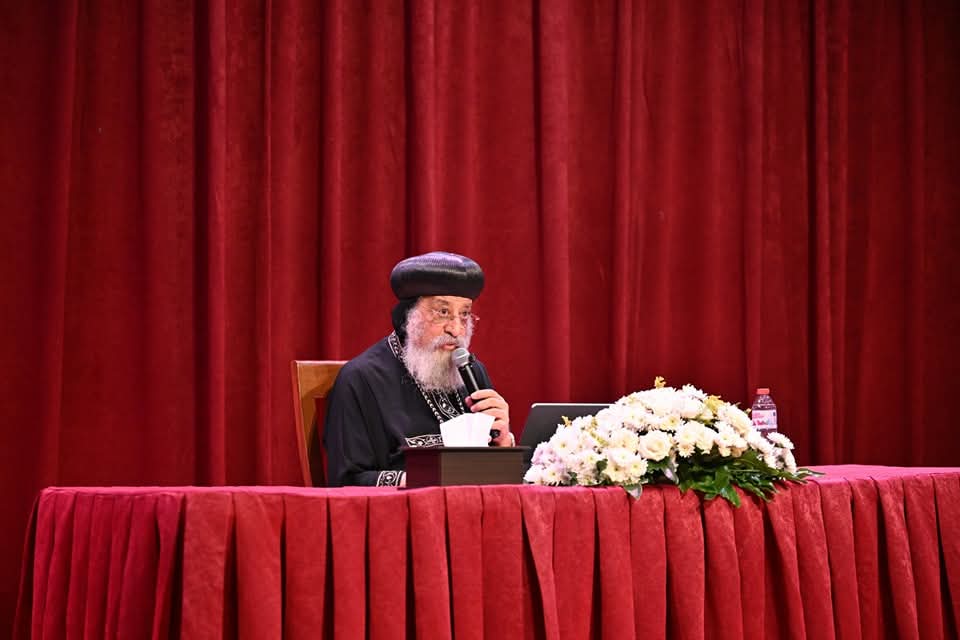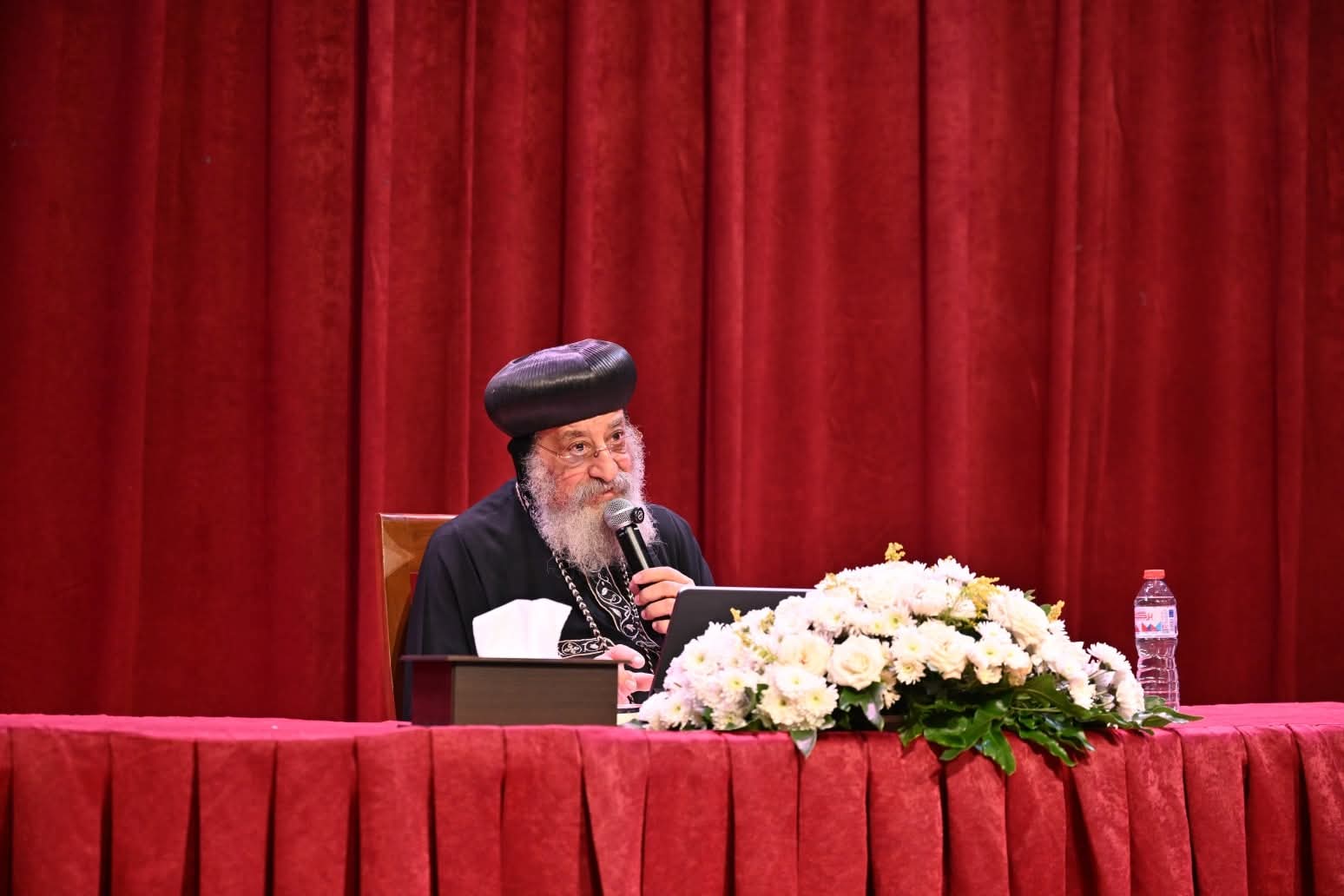 وفي كلمته للآباء الكهنة تناول قداسة البابا موضوع جعل عنوانه "الكاهن بين الذات والاتضاع" وذلك من خلال ورد في سفر أخبار الأيام الثاني: "وَفِي ذلِكَ الزَّمَانِ جَاءَ حَنَانِي الرَّائِي إِلَى آسَا مَلِكِ يَهُوذَا وَقَالَ لَهُ: "مِنْ أَجْلِ أَنَّكَ اسْتَنَدْتَ عَلَى مَلِكِ أَرَامَ وَلَمْ تَسْتَنِدْ عَلَى الرَّبِّ إِلهِكَ، لِذلِكَ قَدْ نَجَا جَيْشُ مَلِكِ أَرَامَ مِنْ يَدِكَ. أَلَمْ يَكُنِ الْكُوشِيُّونَ وَاللُّوبِيُّونَ جَيْشًا كَثِيرًا بِمَرْكَبَاتٍ وَفُرْسَانٍ كَثِيرَةٍ جِدًّا؟ فَمِنْ أَجْلِ أَنَّكَ اسْتَنَدْتَ عَلَى الرَّبِّ دَفَعَهُمْ لِيَدِكَ. لأَنَّ عَيْنَيِ الرَّبِّ تَجُولاَنِ فِي كُلِّ الأَرْضِ لِيَتَشَدَّدَ مَعَ الَّذِينَ قُلُوبُهُمْ كَامِلَةٌ نَحْوَهُ، فَقَدْ حَمِقْتَ فِي هذَا حَتَّى إِنَّهُ مِنَ الآنَ تَكُونُ عَلَيْكَ حُرُوبٌ." (٢أخ ١٦: ٧ - ٩)