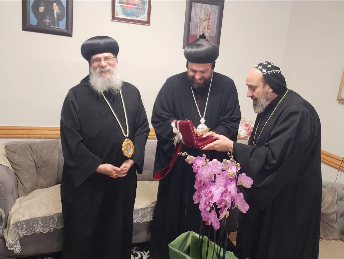وفي ختام اللقاء، تبادل صاحبا النيافة الهدايا التذكارية، ثم توجه الوفدان إلى الكنيسة، حيث رُتّلت عدد من الألحان القبطية والسريانية في صلاة مشتركة تعبيرًا عن وحدة الإيمان والمحبة بين الكنيستين.