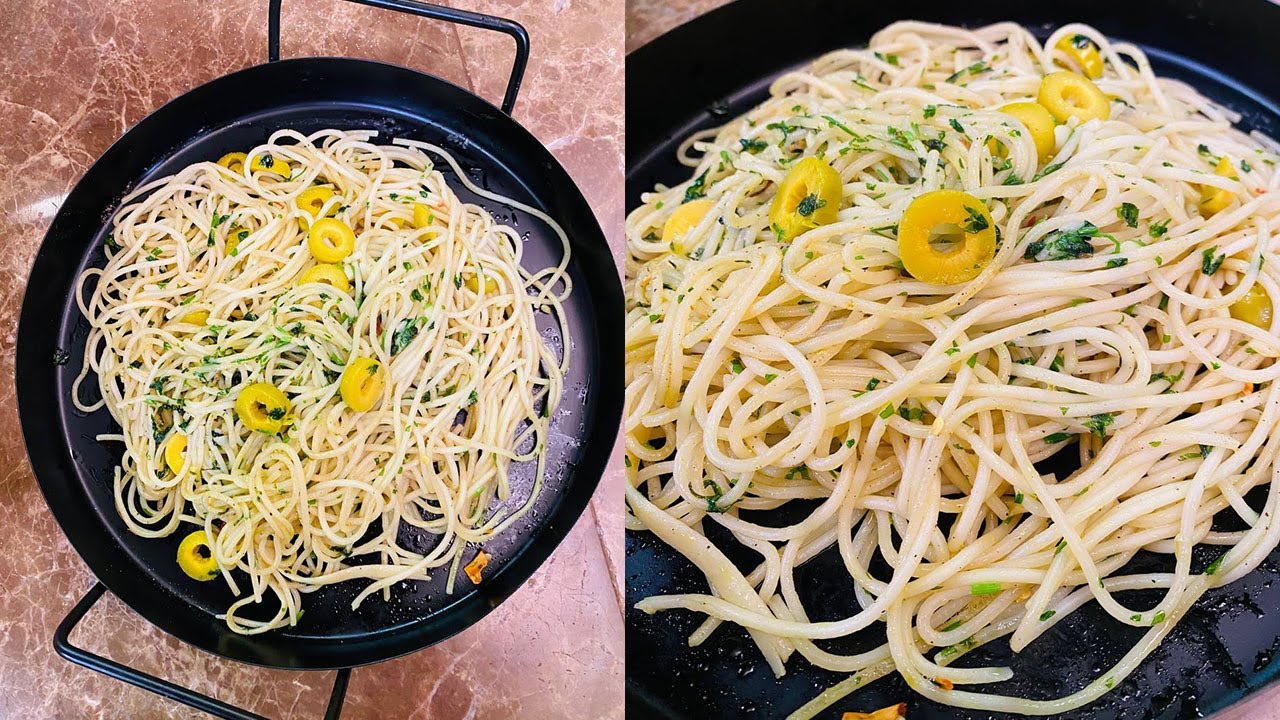 طريقة عمل مكرونة بالثوم والزيت في 10 دقائق