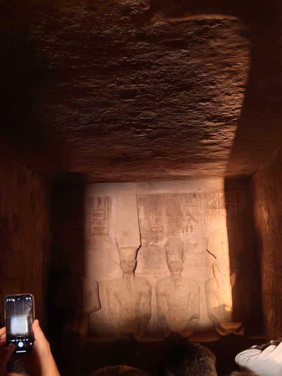 وهذه الظاهرة تتم مرتين خلال العام إحداهما يوم 22 أكتوبر إحتفالاً ببدء موسم الحصاد ، والأخرى يوم 22 فبراير إحتفالاً بموسم الفيضان والزراعة ، وتحدث الظاهرة من خلال تعامد شعاع الشمس على تمثال الملك رمسيس الثانى وتماثيل الآلهة (أمون ورع حور ) لتخترق أشعة الشمس الذهبية صالات معبد رمسيس الثانى داخل قدس الأقداس .