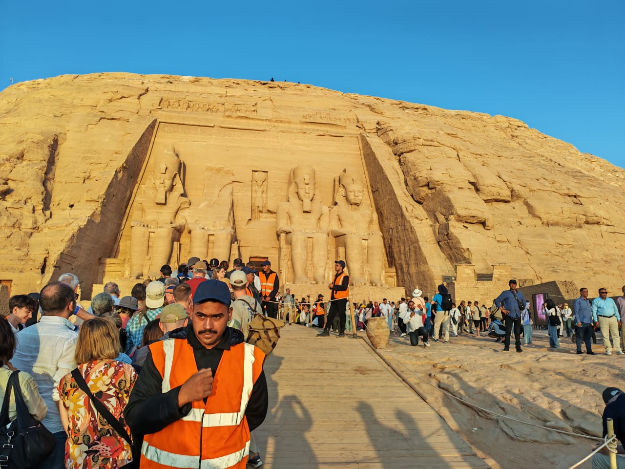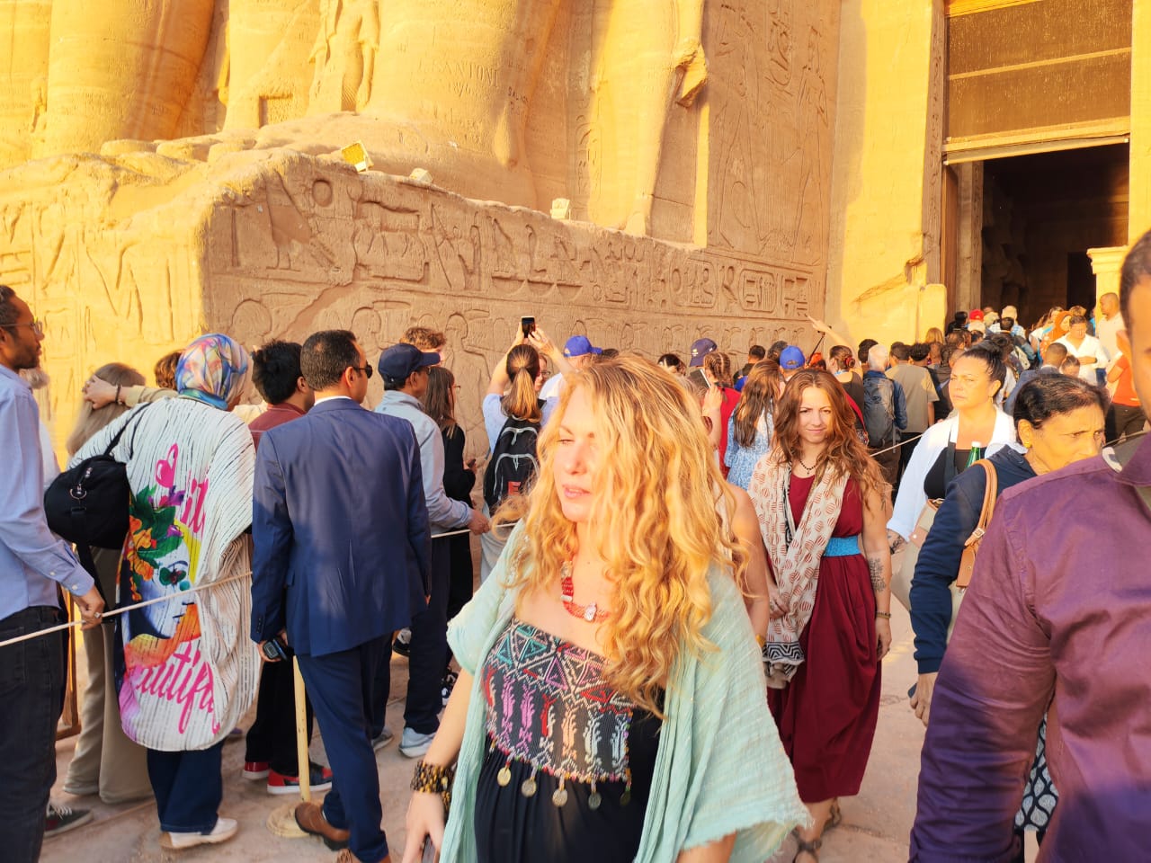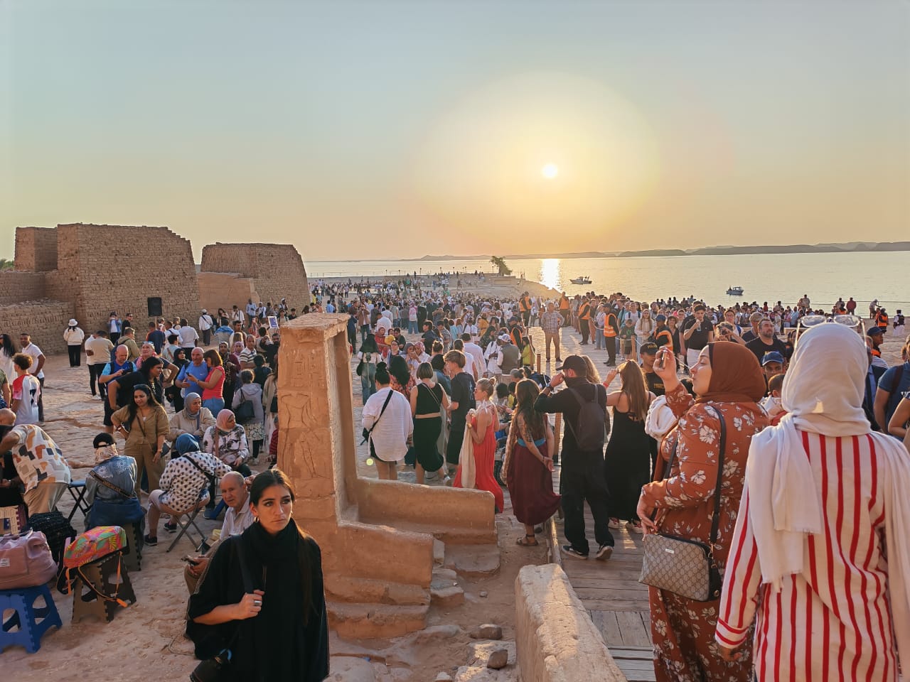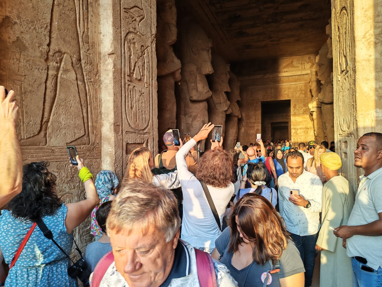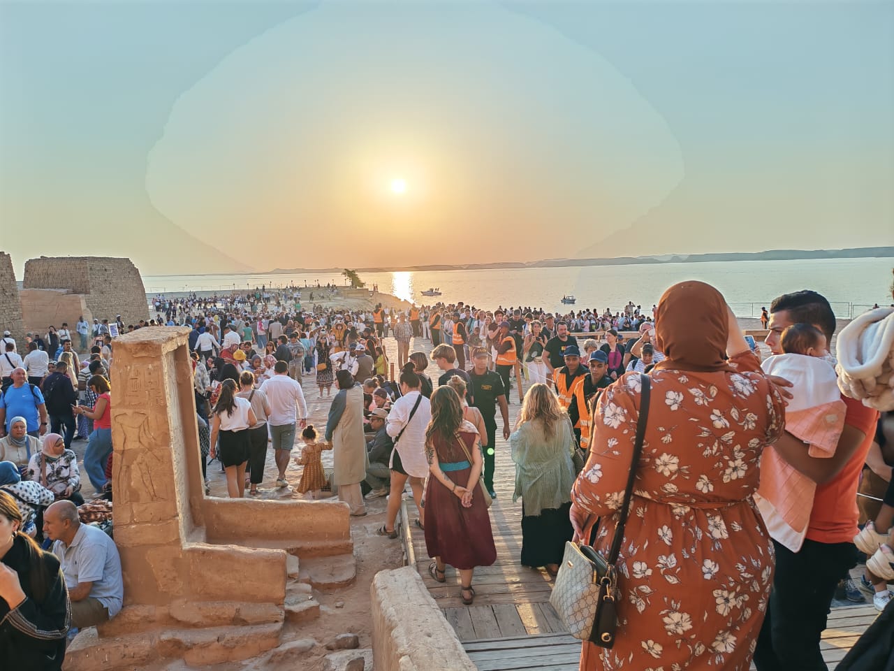 توافد المئات إلى معبد أبو سمبل لمشاهدة ظاهرة تعامد الشمس على وجه الملك رمسيس الثانى داخل قدس الأقداس فى مشهد يتكرر مرتين كل عام، فى 22 فبراير و22 أكتوبر.