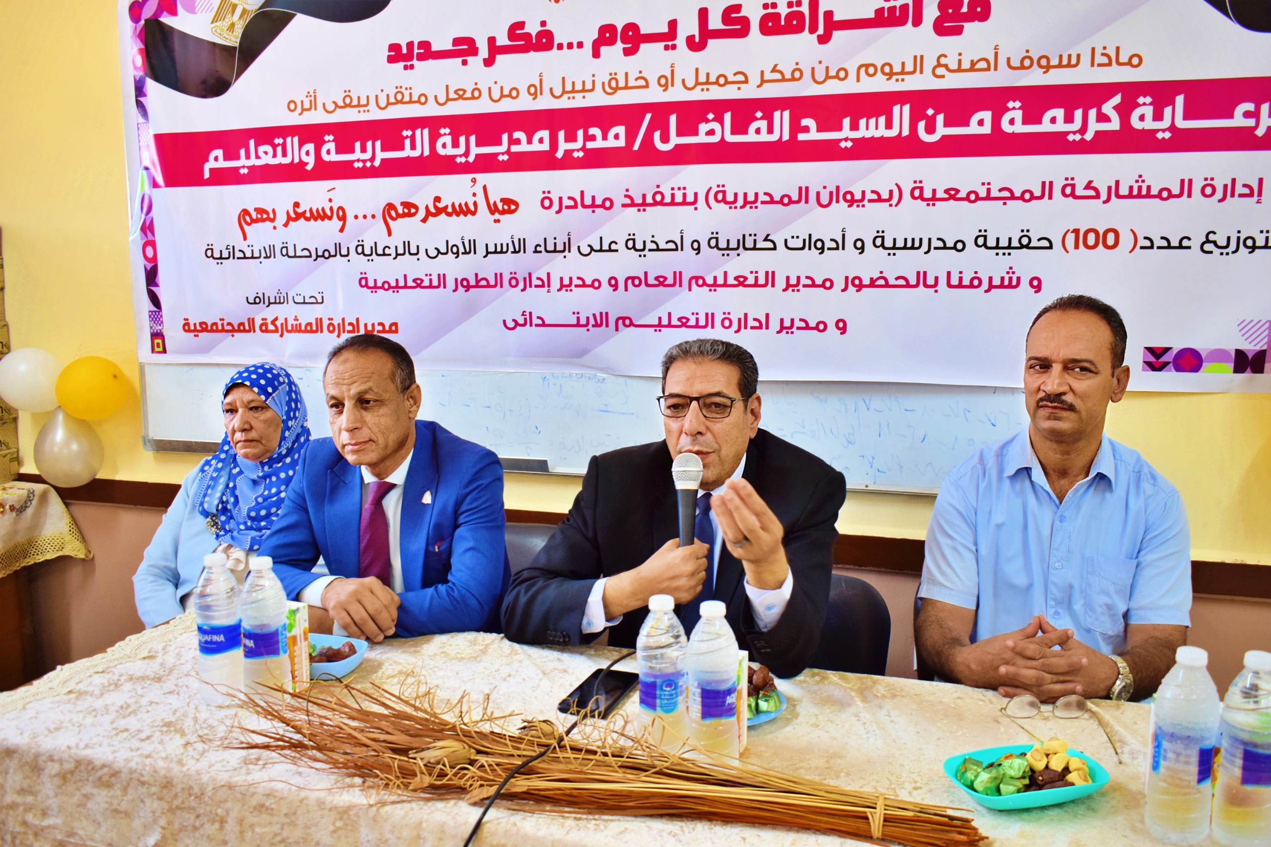 أُقيم حفل المبادرة وتوزيع الهدايا المدرسية على تلاميذ الأسر الأولى بالرعاية في قاعة مبنى مديرية التربية والتعليم القديمة، بحضور سامي الجندي مدير الشؤون التنفيذية بالمديرية، و أحمد غيث مدير إدارة طور سيناء التعليمية، و أميمة عبد المعطي مدير التعليم الابتدائي بالمديرية، و علياء شهبور موجه أول المسرح.