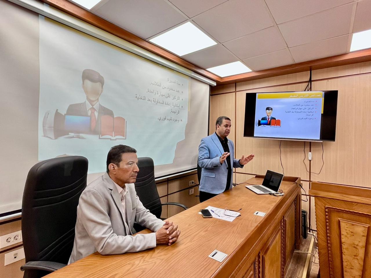 من جانبه، أوضح الدكتور محمود النوبي، مدير مركز تنمية قدرات أعضاء هيئة التدريس والقيادات، أن هذه الدورة تأتي استكمالًا لسلسلة البرامج التدريبية التي ينفذها المركز، مؤكّدًا أن الهدف الأساسي منها هو إعداد معلم جامعي قادر على أداء رسالته بكفاءة ومهارة داخل الحرم الجامعي.