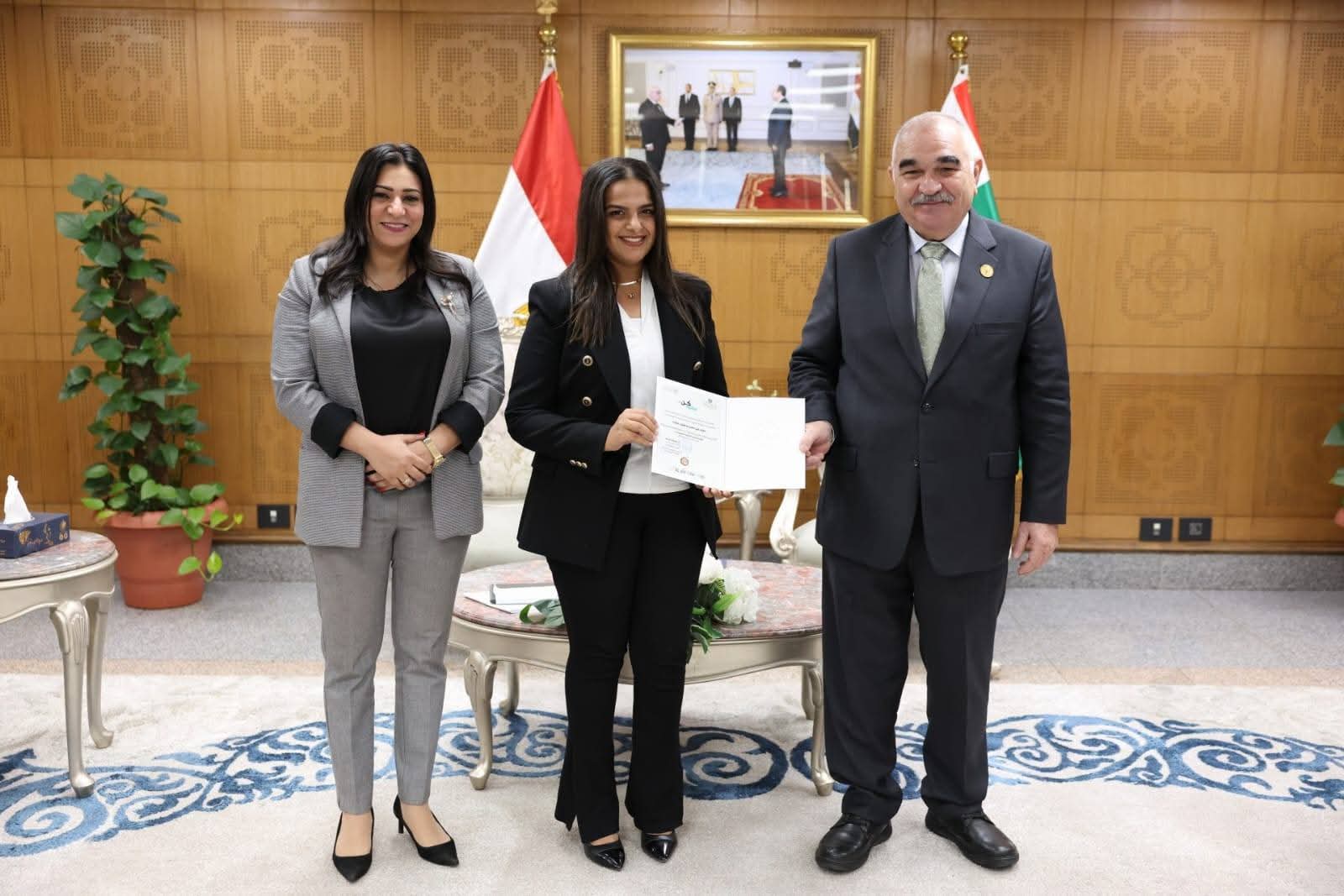 احتفت هيئة قضايا الدولة، يوم الإثنين الموافق ٢٠ أكتوبر ٢٠٢٥، بتخريج دفعة جديدة من برنامج "كُنَّ سَفِيرًا" لسفراء التنمية المستدامة، وذلك في إطار حرصها على دعم الجهود الوطنية لتحقيق رؤية مصر ٢٠٣٠، وتعزيز ثقافة التنمية المستدامة والحوكمة الرشيدة.
