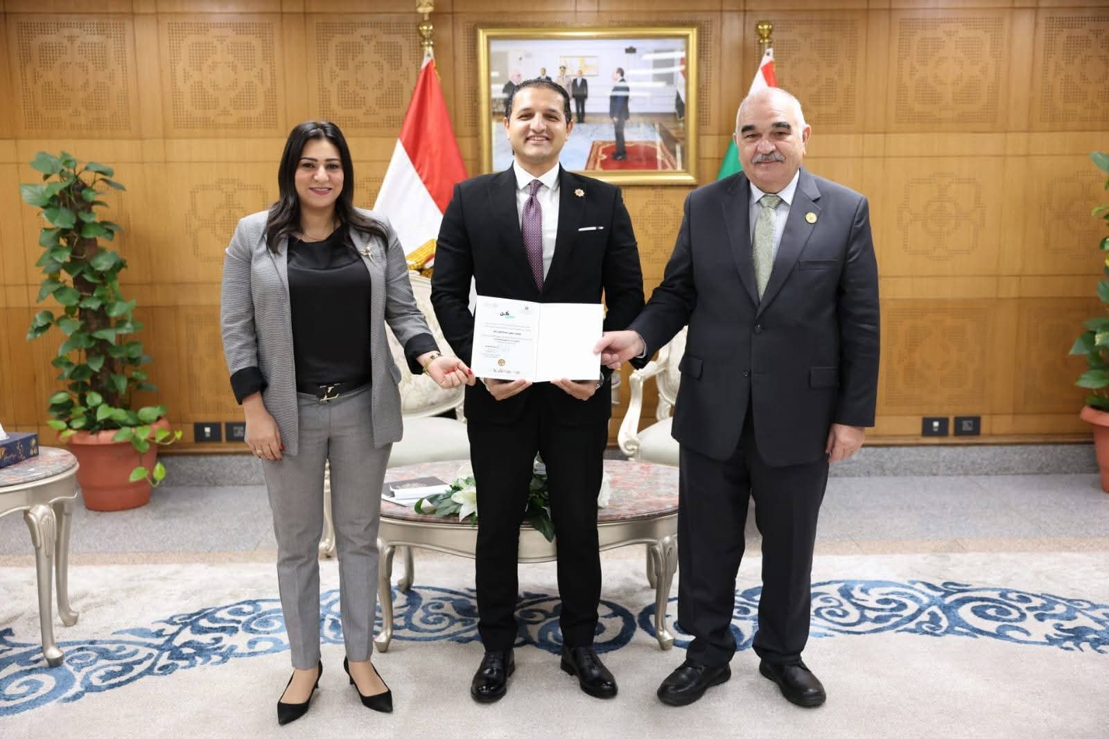 وتُوِّج الحفل بتكريم المستشار الدكتور/ حسين مدكور، رئيس الهيئة للمتدربين من أعضاء الهيئة والكادر الإداري، ممن اجتازوا بنجاح برنامج "كن سفيراً" الدفعة الرابعة، وسلمهم شهادات التقدير؛ عِرْفَانًا بجهودهم وتميزهم، وذلك بحضور المستشارة/ مي مروان، رئيس أمانة شئون المرأة والرعاية الإنسانية والتطوير والحوكمة ووحدة شئون ذوى الإعاقة.