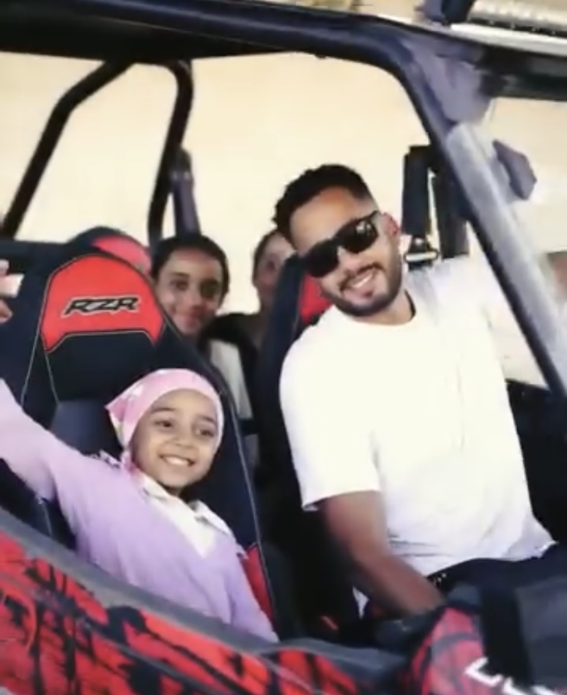 ونشر فيديو جمعهما، وشارك ركوب الخيل وقضاء وقت ممتع معها، وعلق قائلا: ليلى الجميلة، بطلة من نوع خاص، كان ليا الشرف إني أشاركها لحظات النهاردة. قضينا وقت حلو مع الخيل وروحها كانت مليانة أمل. ياريت ندعي لها كلنا، عشان بكرة بتبدأ العلاج الإشعاعي، وإن شاء الله ربنا يشفيها ويقوّيها .