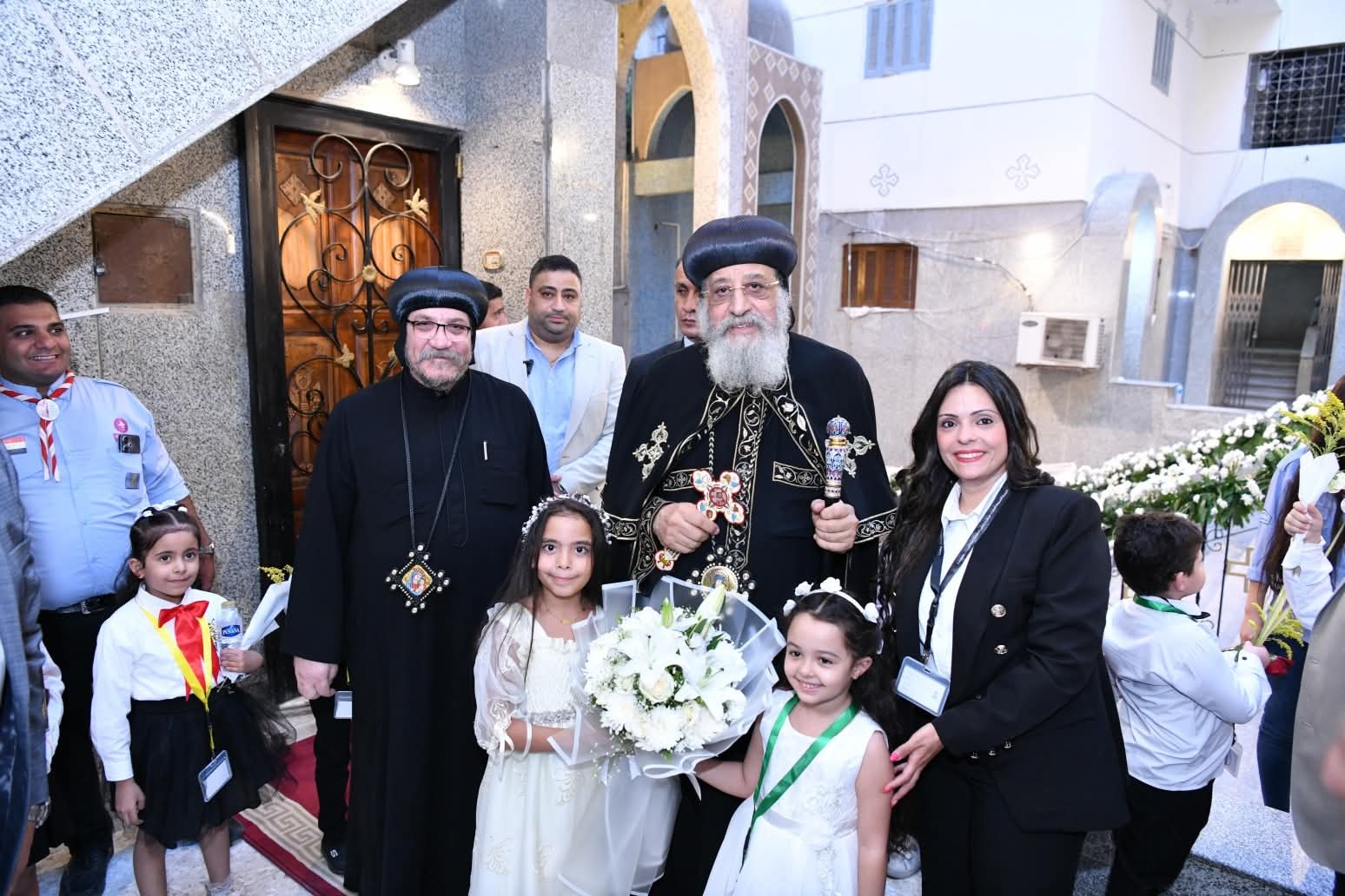 وعقب العشية ألقى نيافة الأنبا أولوجيوس وكهنة الكنيسة كلمات محبة وترحيب بقداسة البابا، ورتل خورس الشمامسة وكورال الكنيسة مجموعة من الألحان والترانيم. وتم تكريم اثنين من المتميزين من أبناء الكنيسة، هما إيريني سمير الحائزة على جائزة الدولة التشجيعية لعام ٢٠٢٥ على كتابها "أقنعة الختان المختلفة" وهاني موريس الراهب الذي أعد كتاب الأجبية باللغة القبطية بعد جهد بحثي مميز فيها.