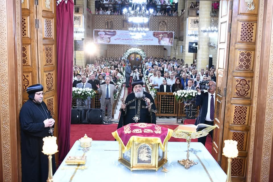 وصلى قداسته صلوات العشية بمشاركة نيافة الأنبا أولوجيوس الأسقف العام لقطاع كنائس عين شمس والمطرية وحلمية الزيتون، وعدد من أحبار الكنيسة، وكهنة قطاع عين شمس والمطرية وحلمية الزيتون