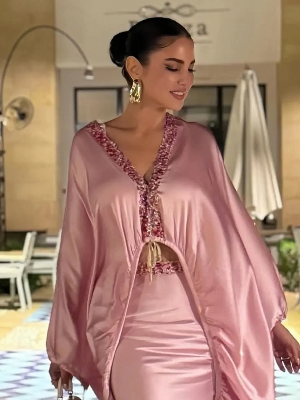 وفي إطلالة أخرى، اختارت درة فستاناً أزرق داكناً بدون أكمام أضفى عليها لمسة من الفخامة الهادئة، ونسقته مع مجوهرات مرصعة بالألماس والياقوت، لتكمل إطلالتها الملكية بتسريحة ذيل حصان ومكياج برونزي ناعم أبرز ملامحها.