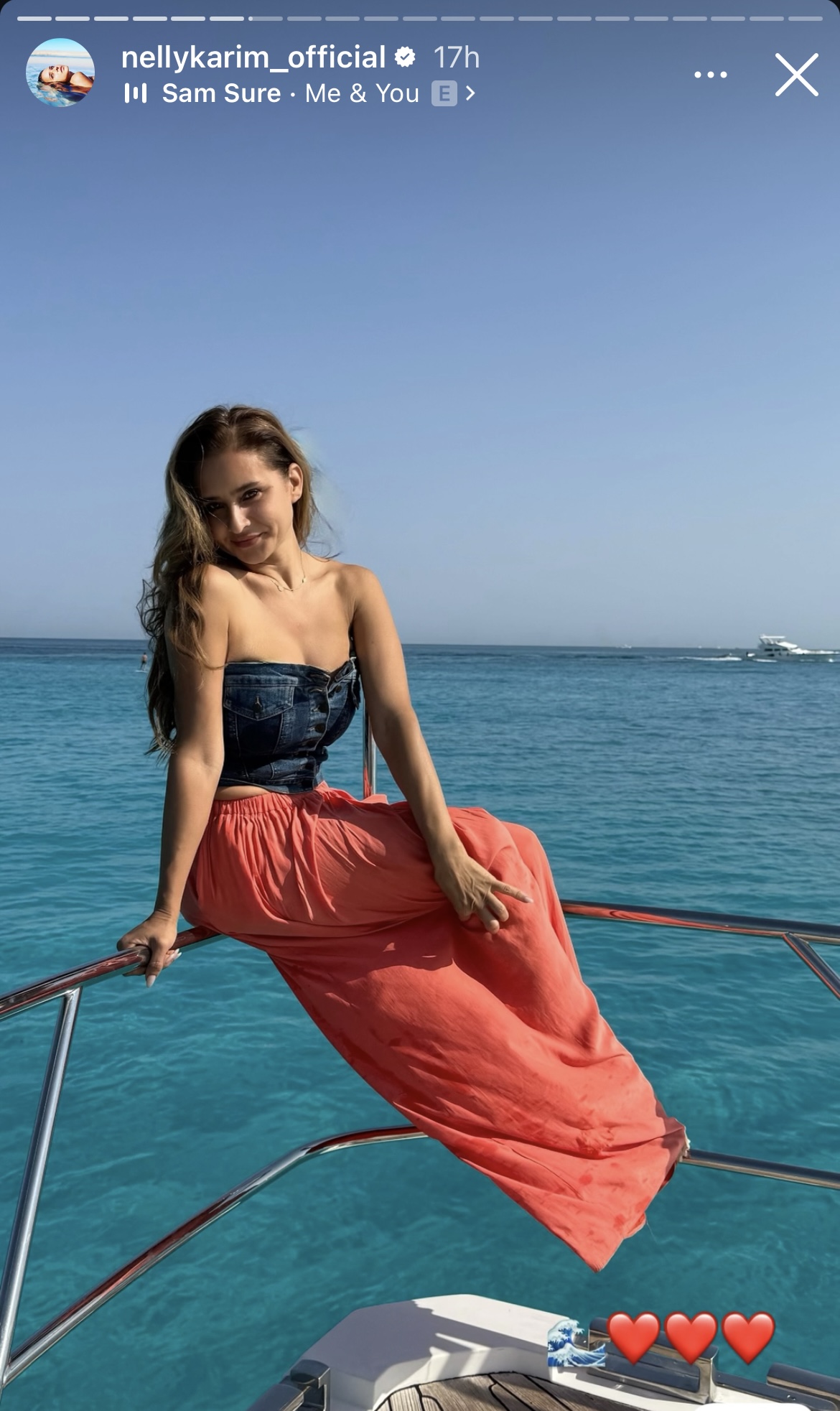 وظهرت نيللى كريم بإطلالة جذابة جريئة على متن يخت مرتدية بلوزة جينز بدون حمالات نسقت معها جيبة باللون البرتقالي، كشفت عن جمالها وأناقتها.
