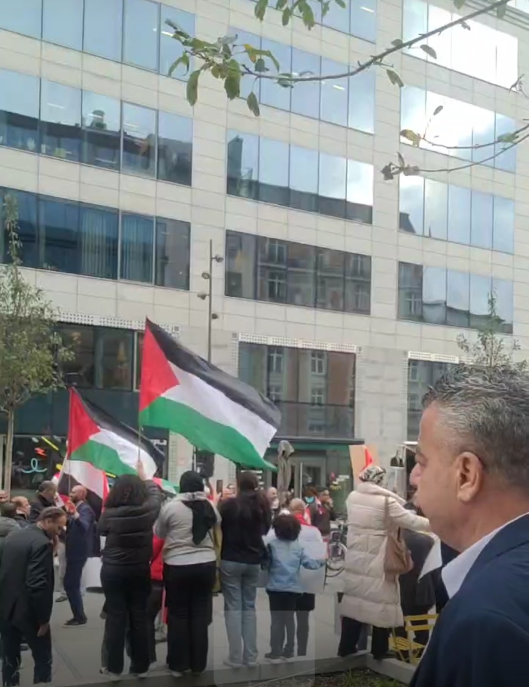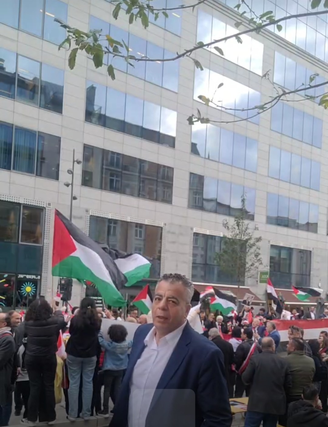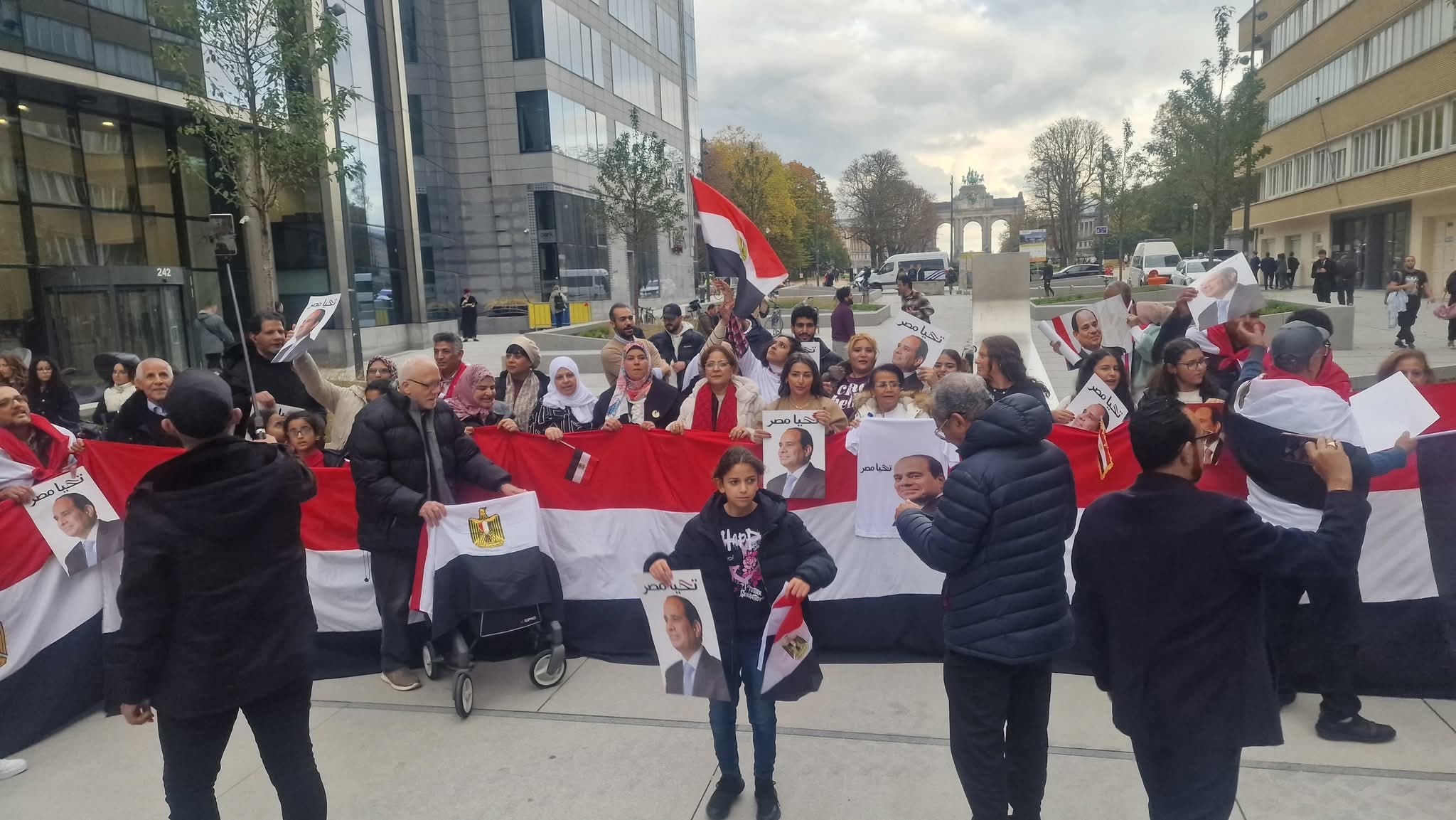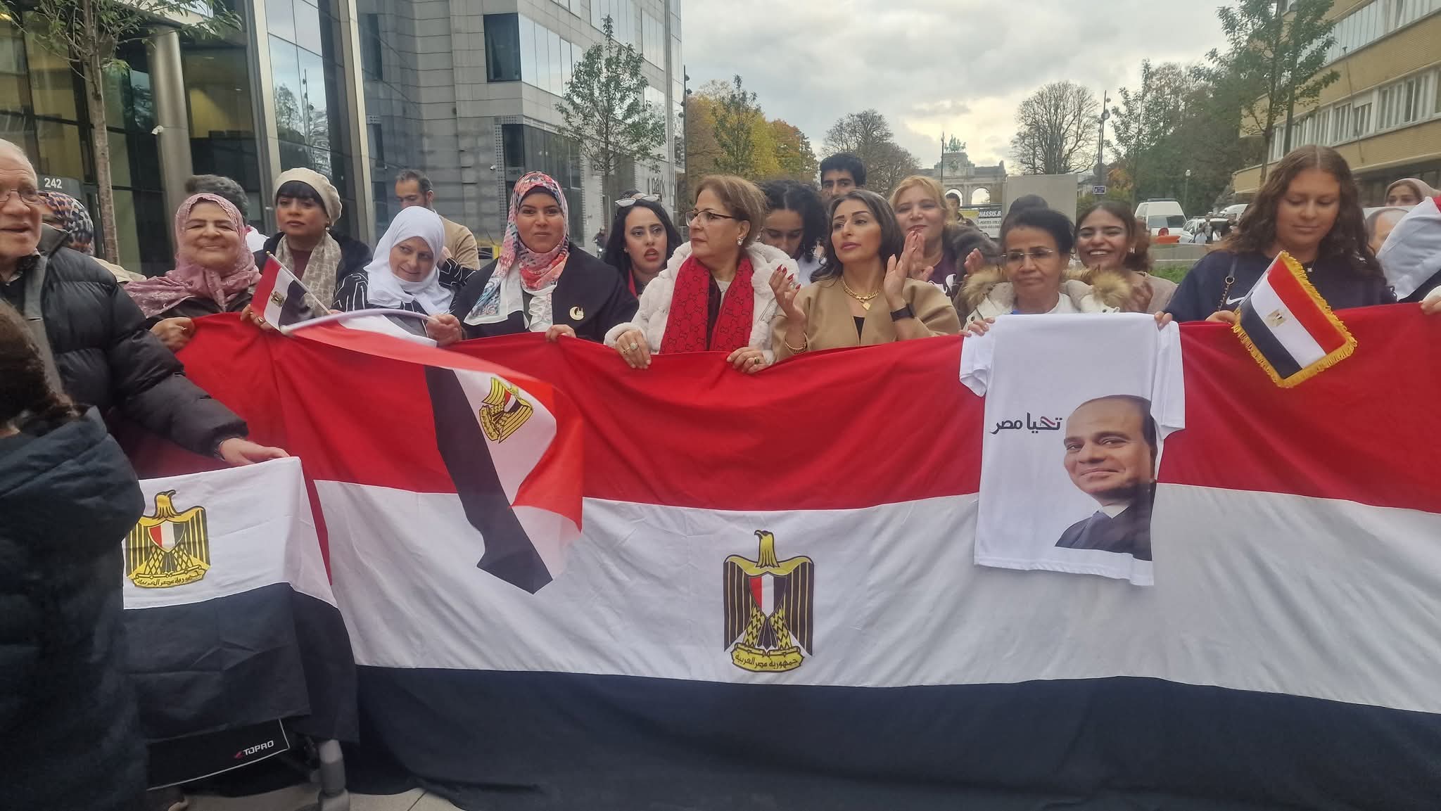 وقد التف المصريون حول مبنى الاتحاد الأوروبي، رافعين الأعلام المصرية والفلسطينية، وهتفوا لدعم مواقف الرئيس السيسي التي تسعى لتحقيق السلام في الشرق الأوسط، مؤكدين على الدور المحوري لمصر في استقرار المنطقة.